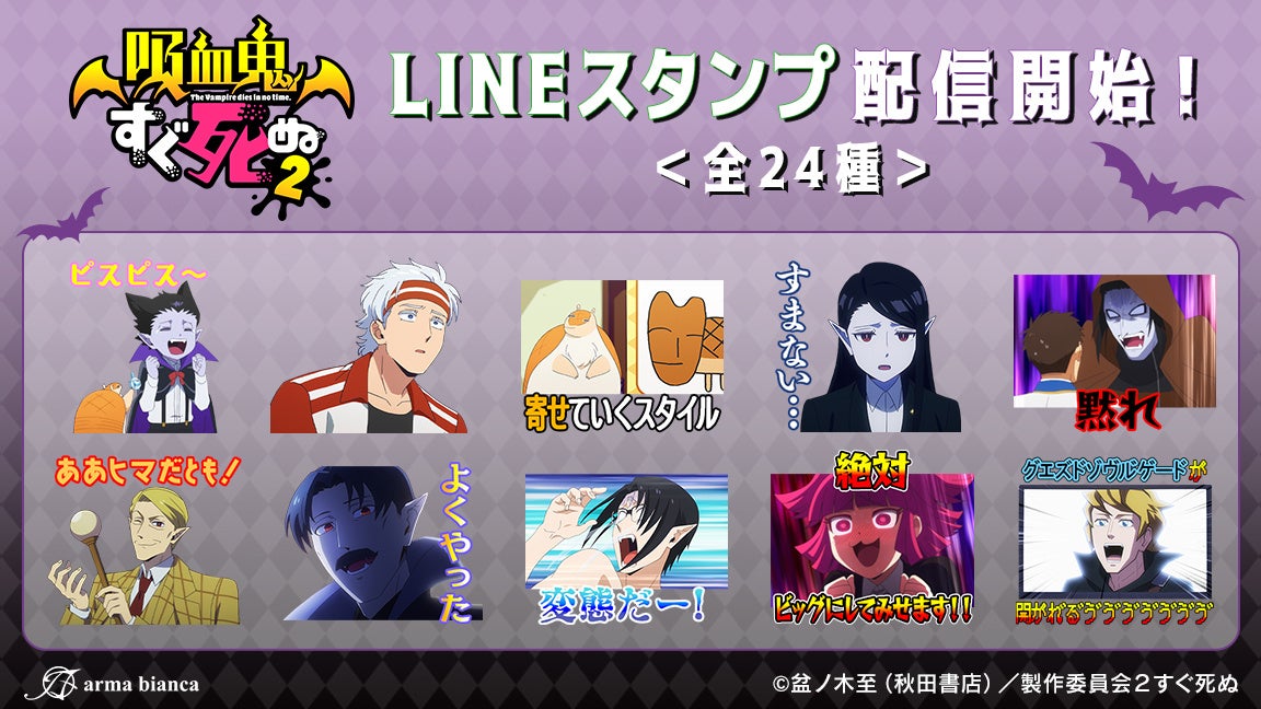 株式会社アルマビアンカはTVアニメ「吸血鬼すぐ死ぬ2」のLINEスタンプを配信いたします。