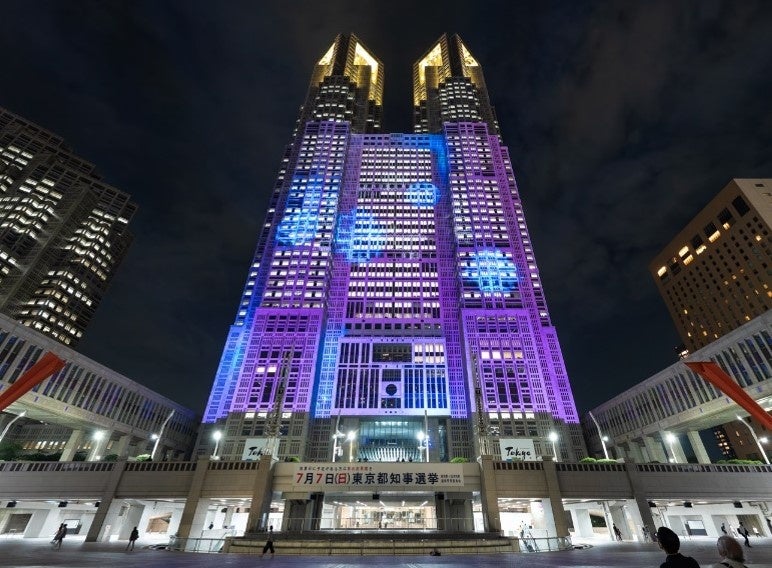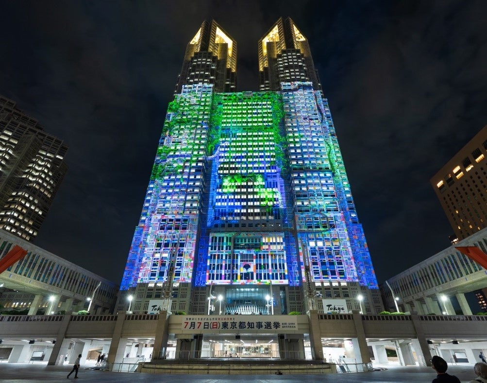 都庁舎におけるプロジェクションマッピング「TOKYO Night & Light」では、プロジェクションマッピングの国際大会で高い評価を受けた国内外のクリエイターらが制作した映像を、40台の機器により精密かつ世界トップレベルの輝度で映し出します。その投影面積は13,904.956㎡で、「最大の建築物へのプロジェクションマッピングの展示(常設)」としてギネス世界記録™に認定されています。