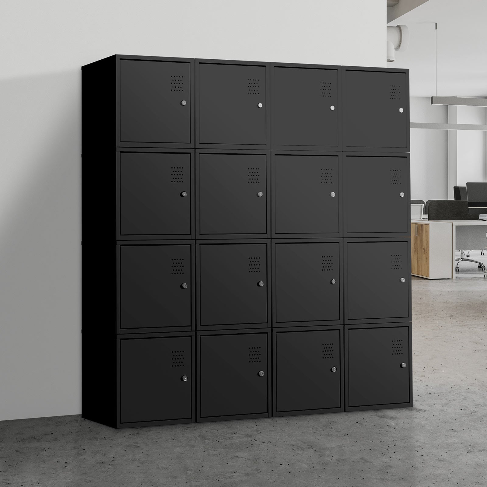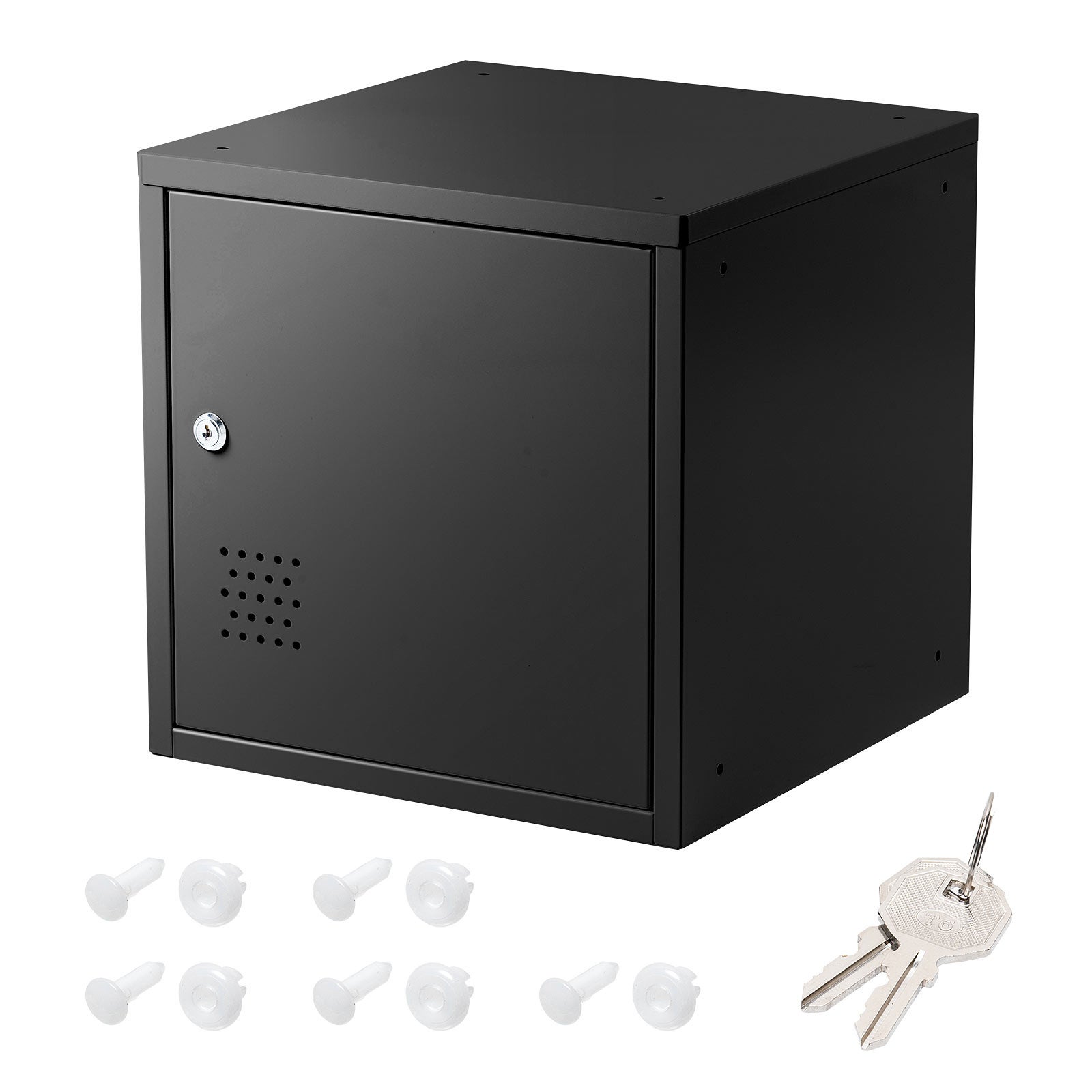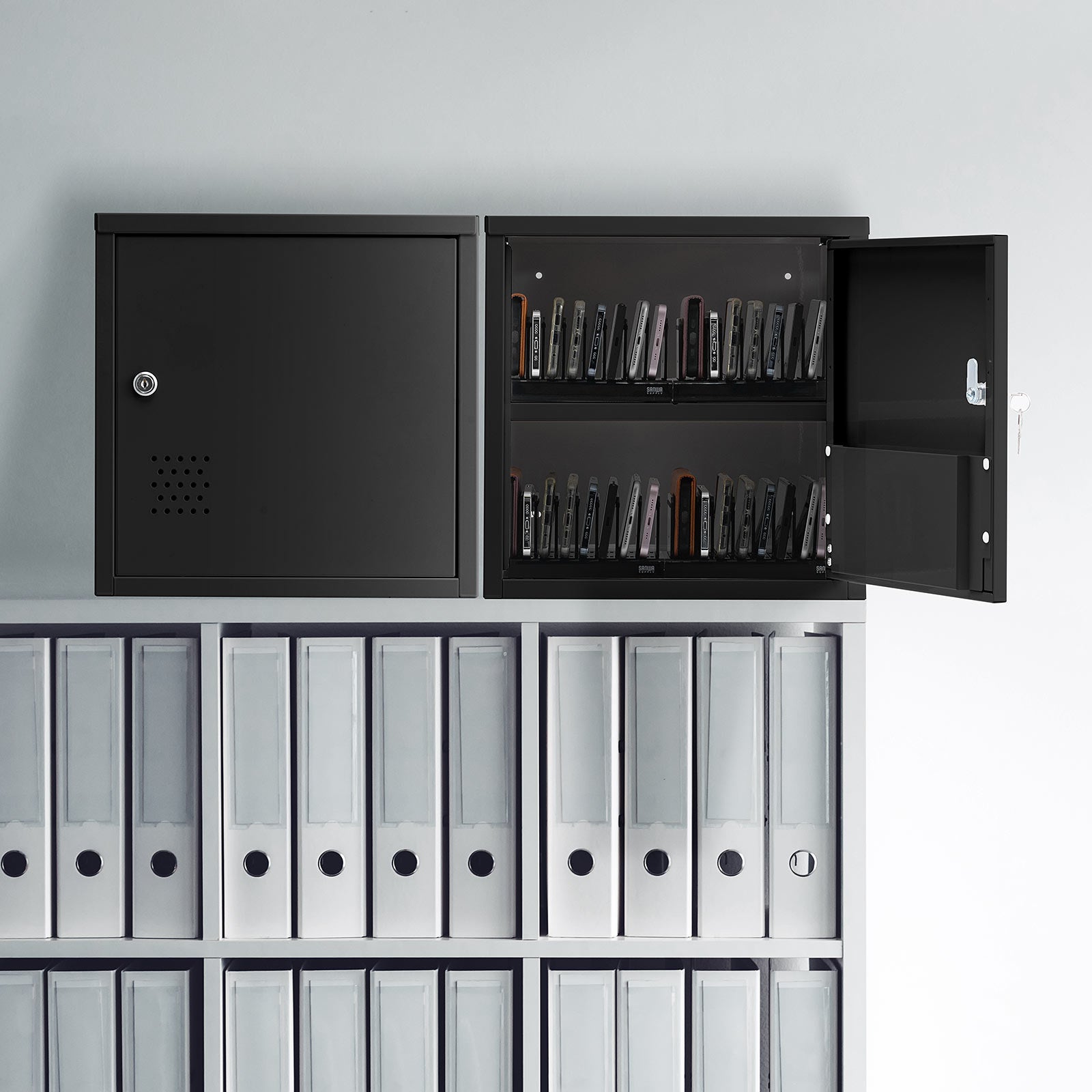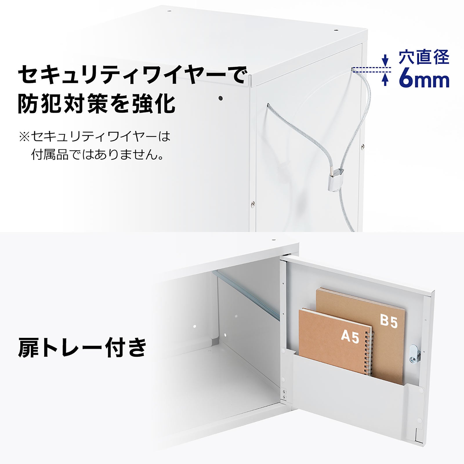セキュリティボックス 小型 スチール製 鍵付き ブラック ロッカー ブックトレー付き スタッキング可能 簡単組立 A4 書類 セキュリティワイヤー