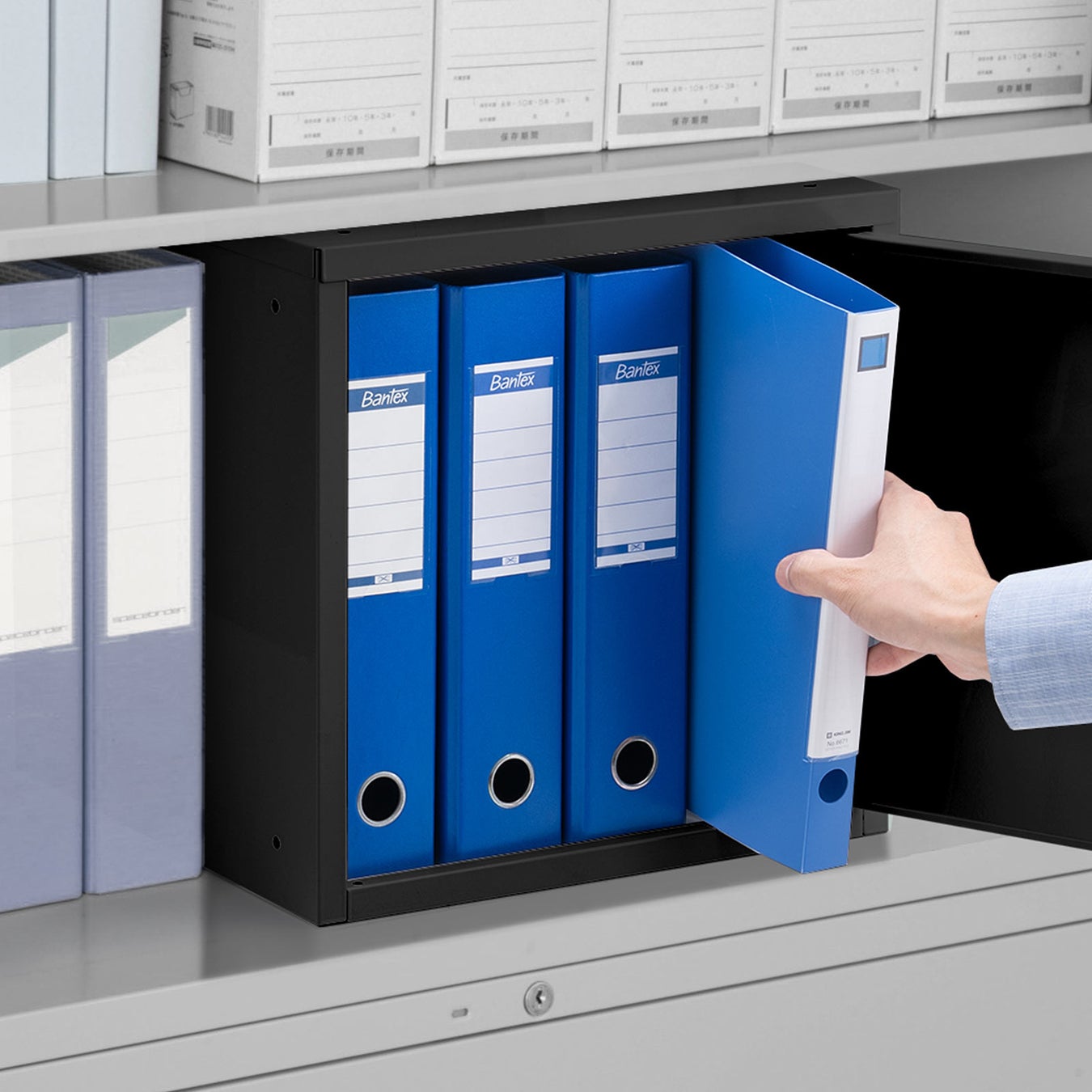 オフィス向けにはA4ファイルの収納、学校向けでは内部の棚板を使用してB5ファイルや電子機器などを分けての収納に便利です。