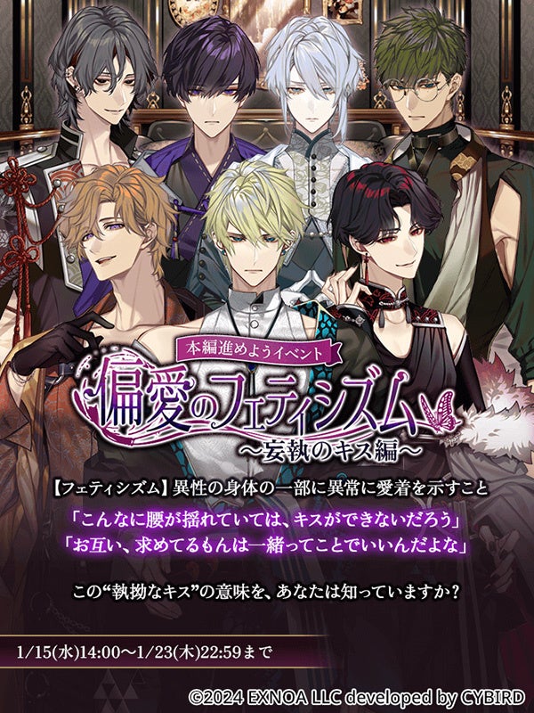 ■本編進めようイベント『偏愛のフェティシズム ~妄執のキス編~』開催中!