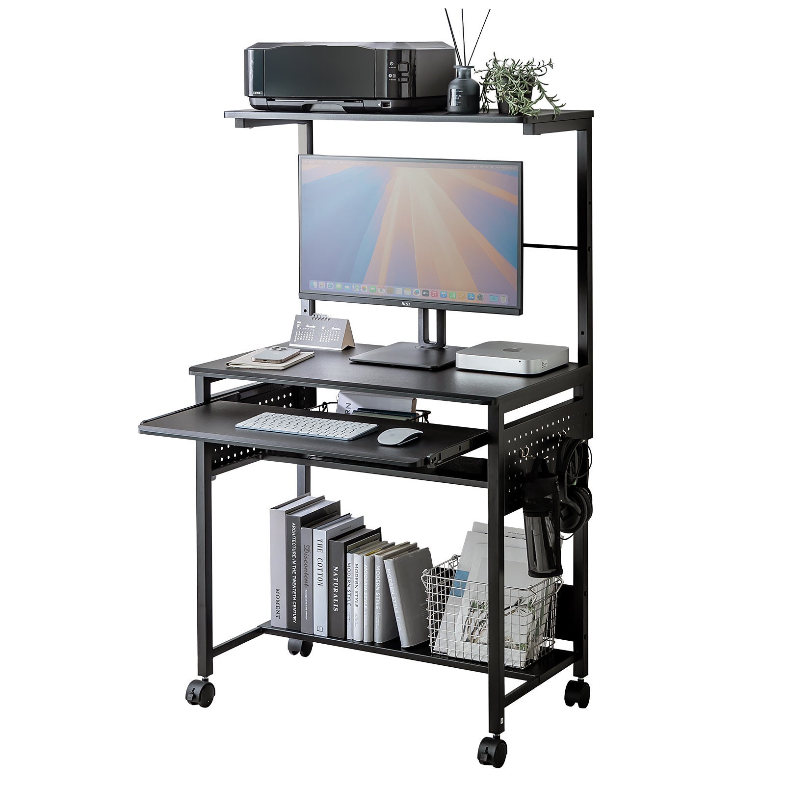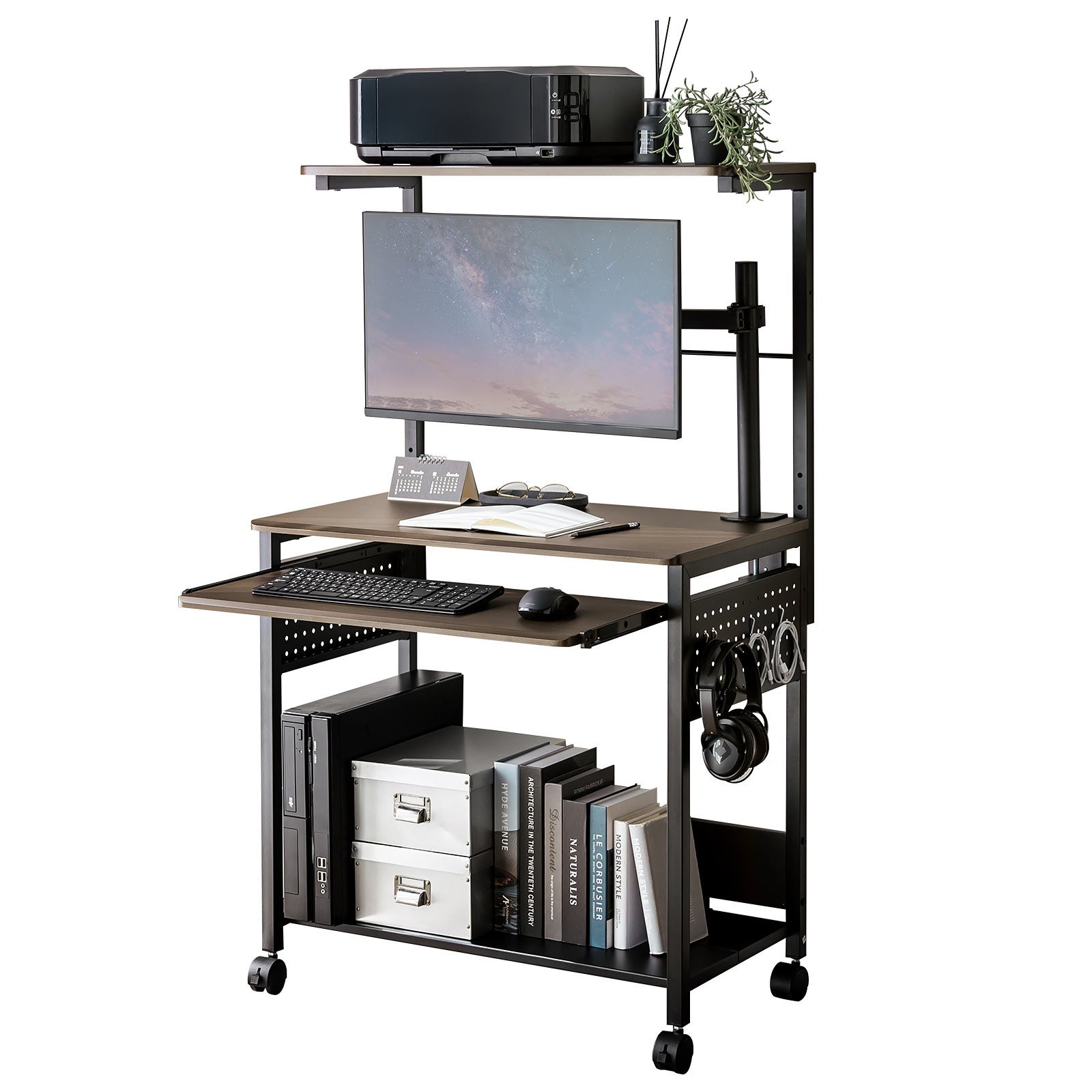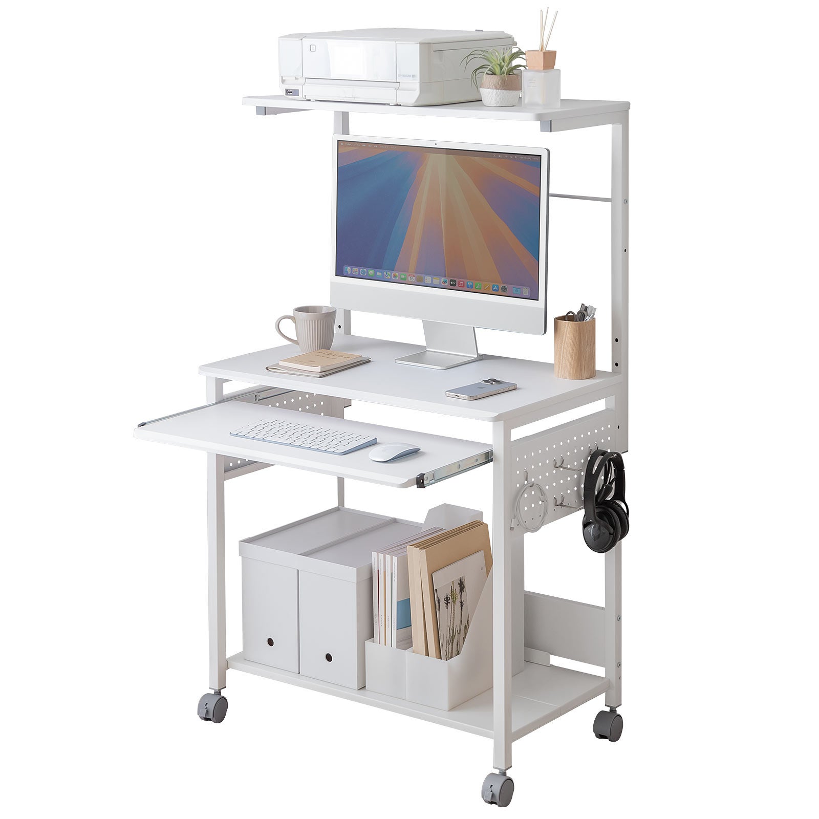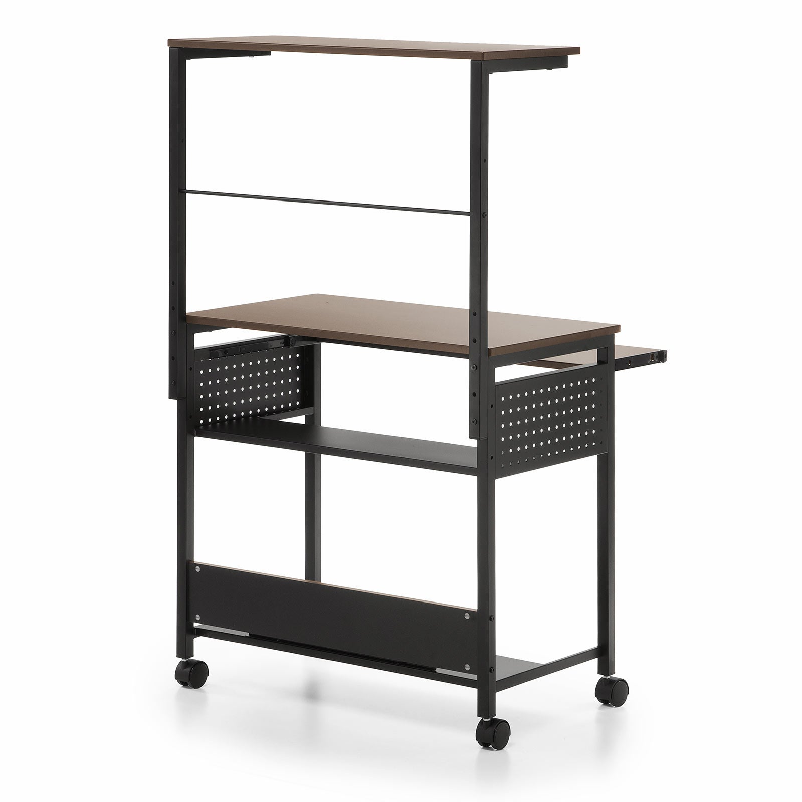 幅75cm パソコンデスク キーボードスライダー 木目調 ブラウン 有孔ボード コンパクト 収納棚付 棚組み替え キャスター付 サブテーブル付