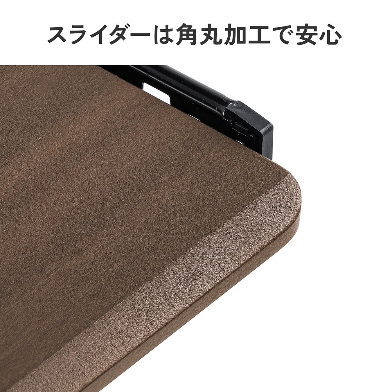 サイドはメッシュパネルだから通気性が良くマグネットを取り付けることができます。キーボードスライダーは角丸化工で安心に使用できます。また、天板は水に強いため日常使いにもおすすめです。