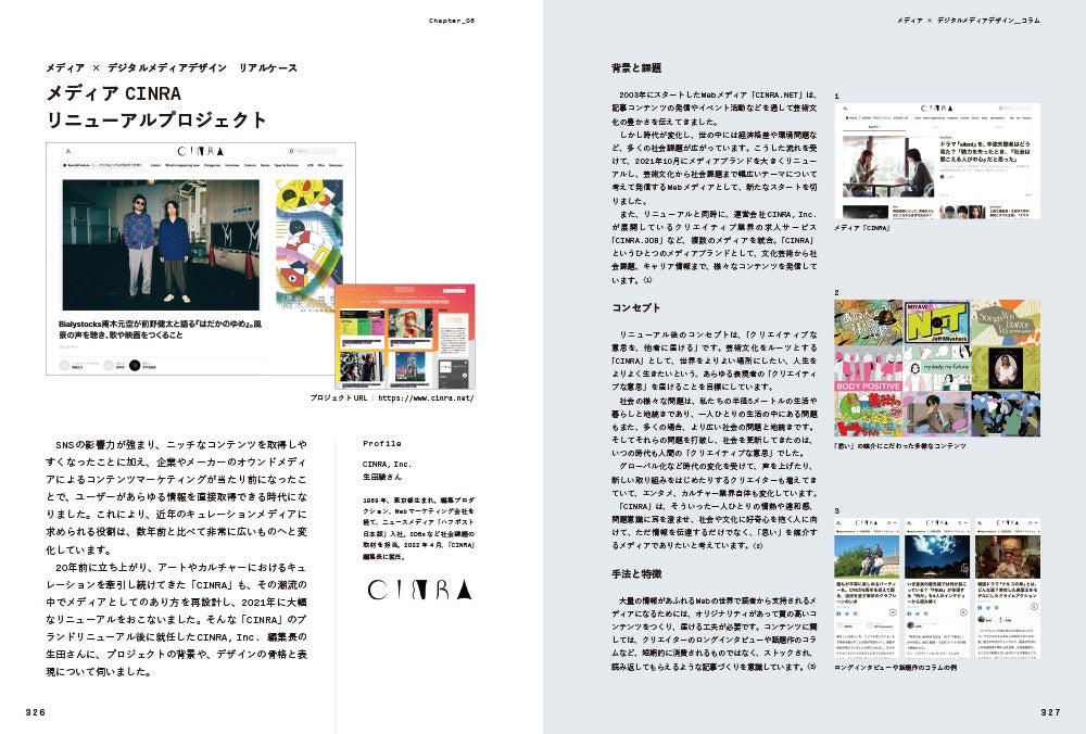 事例の裏には「つくる人たち」が必ず存在しています。そこで各章末にコラムを設け、各デザインの領域の前線で活躍する方々へのインタビューを収録しています。制作工程における中での課題やその解決策、デザインへの思いなど、プロたちの葛藤を知ることは、きっと仕事への刺激を得る機会になるはずです。