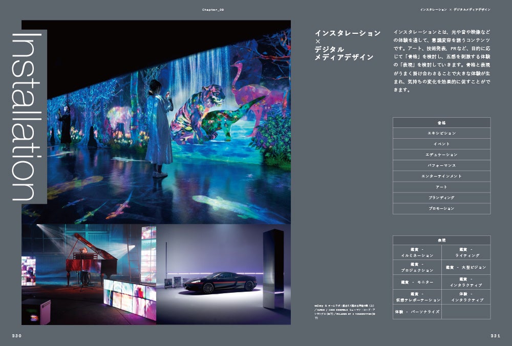 この本は、「デジタルメディア」の領域ごとに最新のデザイン事例を紹介する「デザイン資料集」です。「要素」と「原則」の観点で解説することで、多くの方々に理解していただきやすくしています。ブランディングやプロモーションなどの基本的なデザインだけでなく、インスタレーションやメタバースなど、様々なジャンルや領域のデザイン事例を参照してもらえるものになっています。