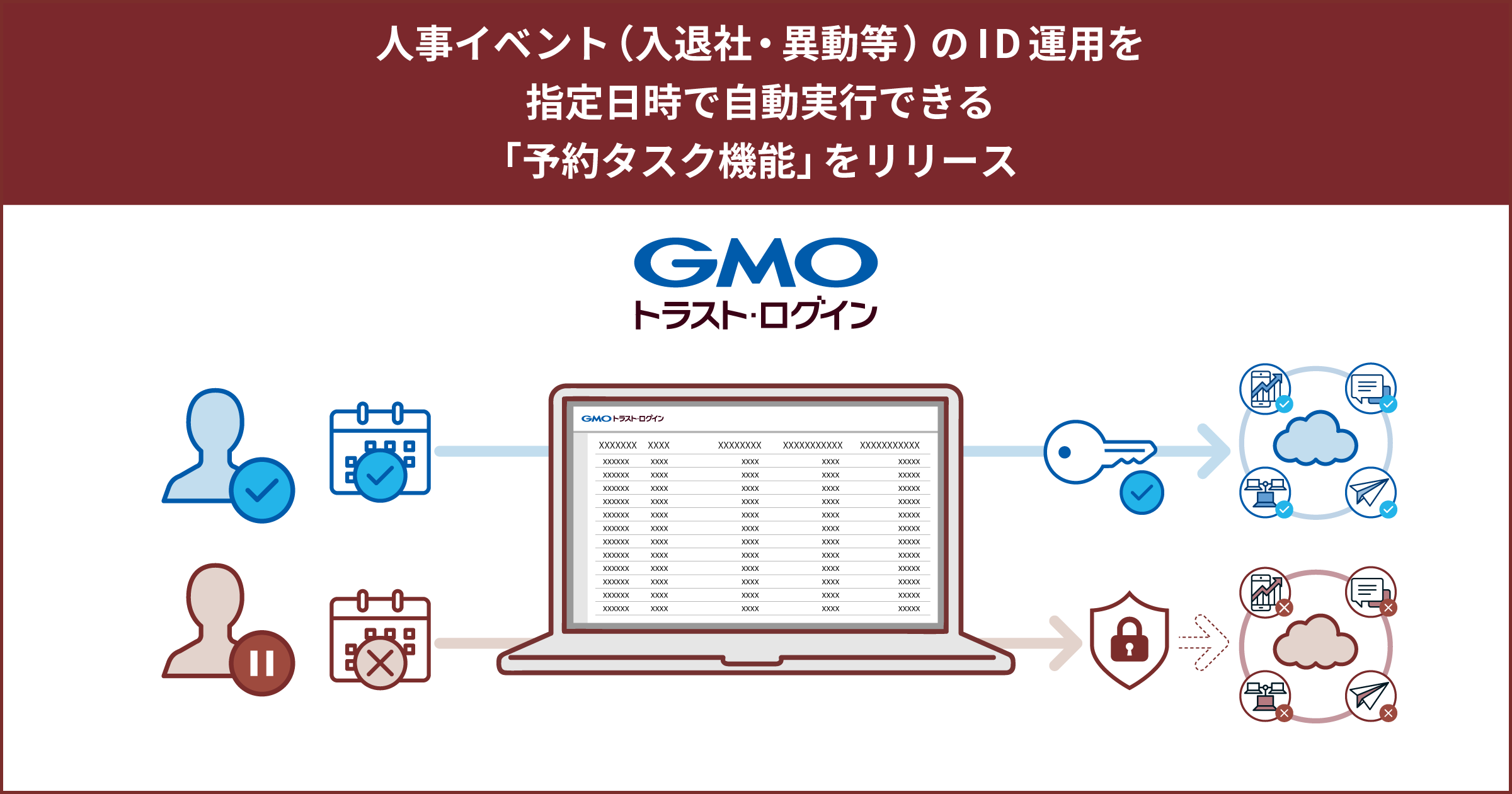 「GMOトラスト・ログイン」、人事イベント(入退社・異動等)のID運用を指定日時で自動実行できる「予約タスク機能」をリリース