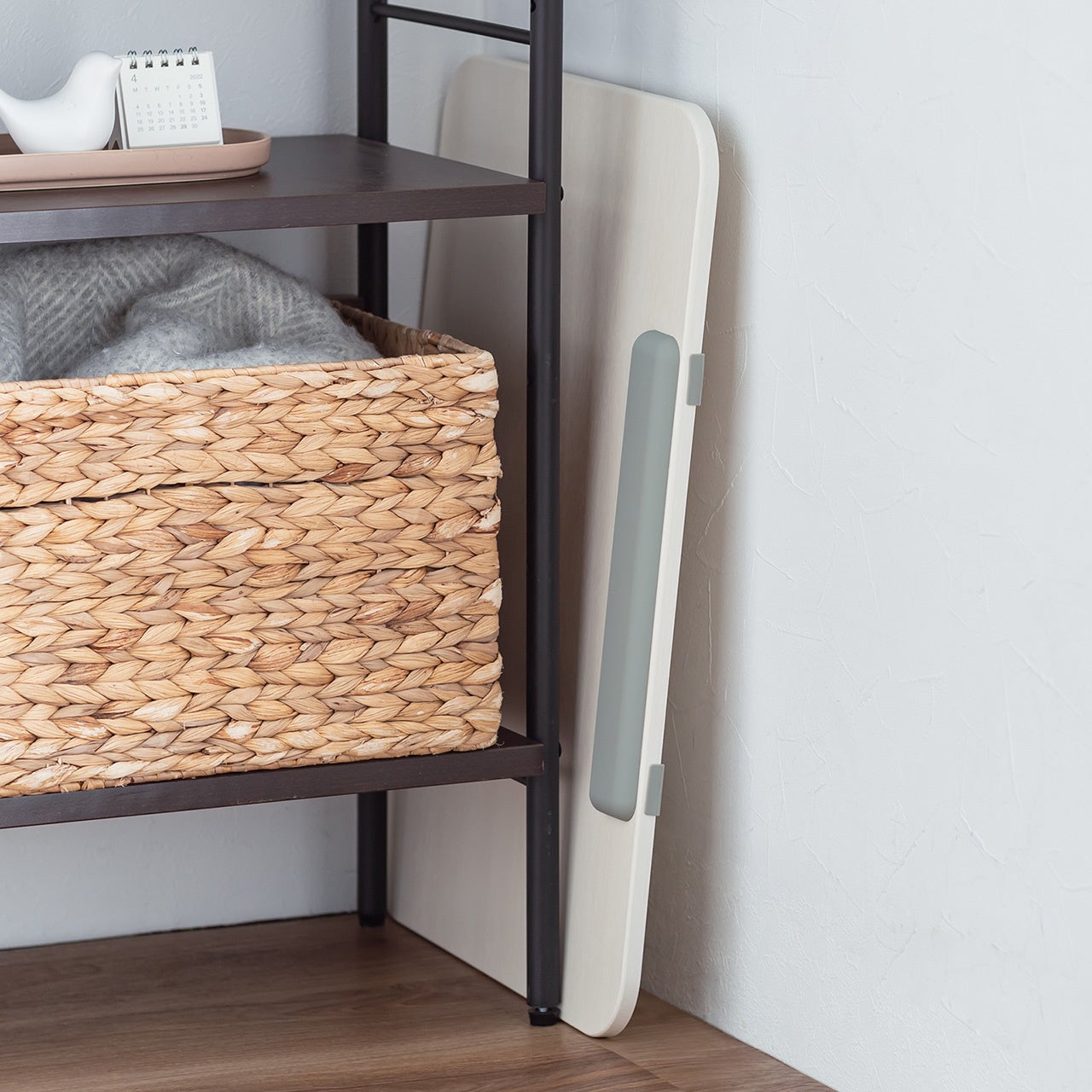 デスクと接する設置面にはシリコーンゴムシート付きで、滑りにくく傷が付くのを防ぎます。折りたたんで薄くできるので、省スペースに収納できます。