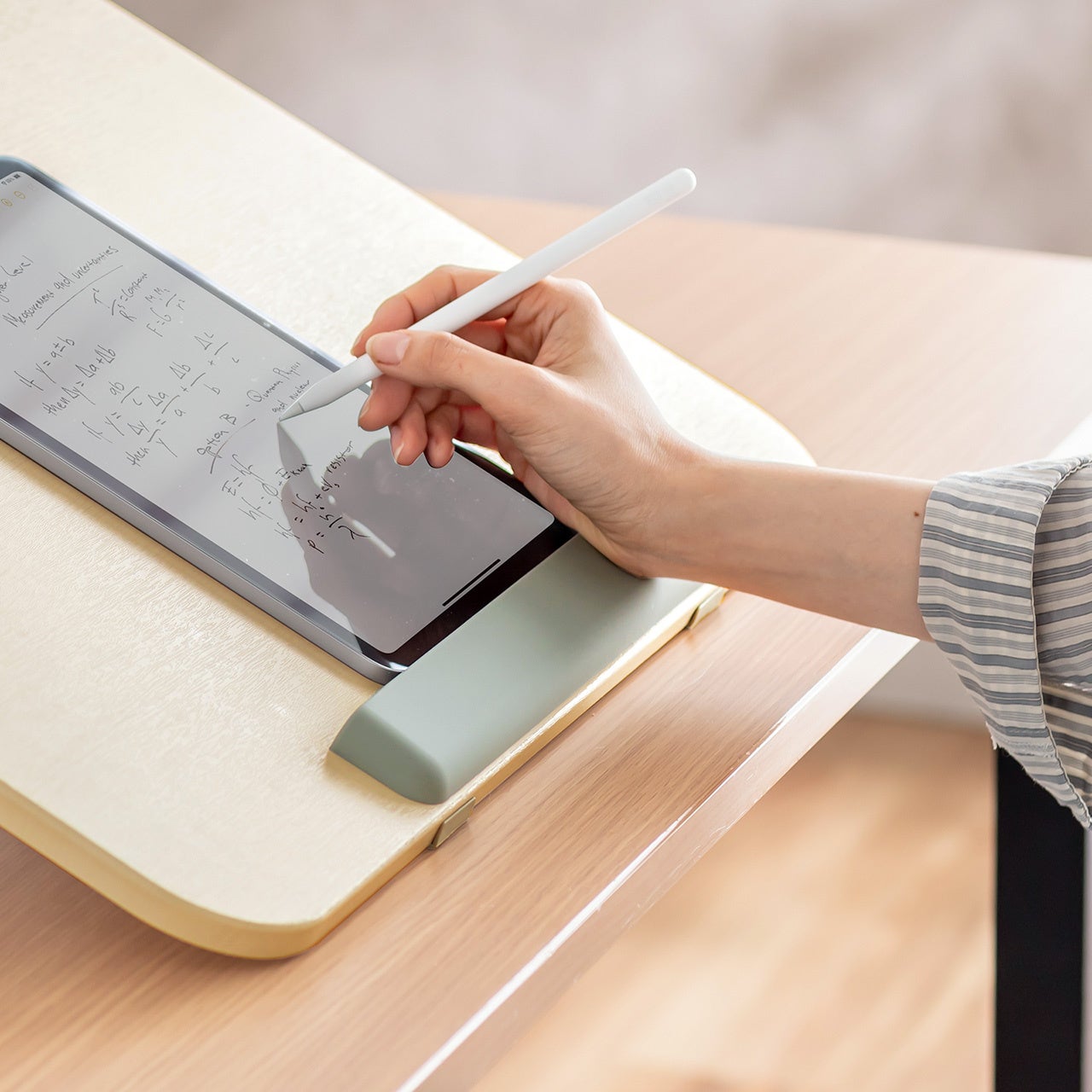 タブレットを立てて置くことで、オンライン学習などでタブレットの画面を見ながら手元でノートをとることもできます。