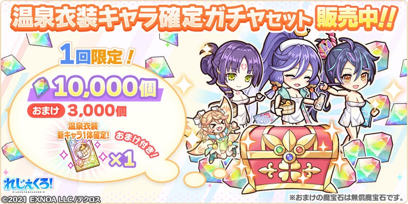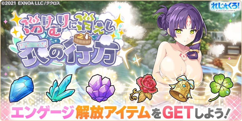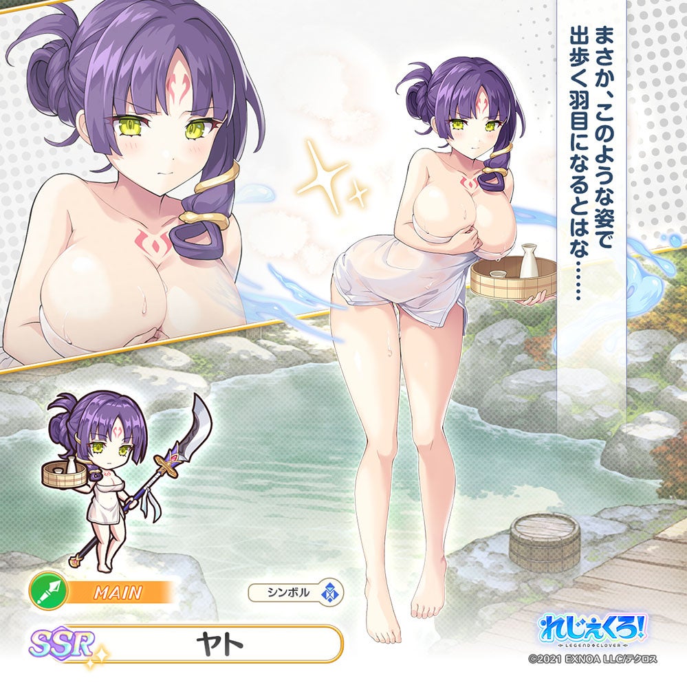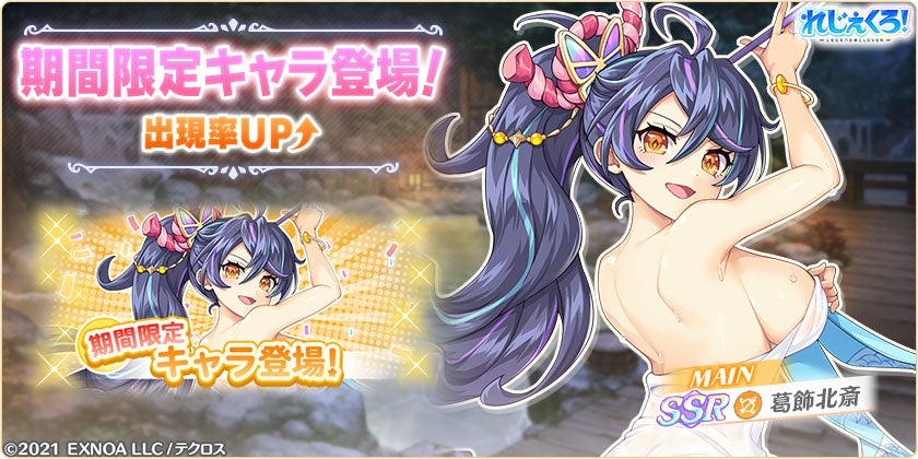 合同会社EXNOA(本社:東京都港区、CEO:村中 悠介、URL:https://games.dmm.com/)が運営するDMM GAMESにおいて、真の英雄となる王道ファンタジー『れじぇくろ!~レジェンド・クローバー~』(https://www.legend-clover.net/)にて、葛飾北斎、ヤト、服部半蔵が温泉衣装で登場!さらに、イベント「湯けむりに消えし衣の行方」が開催!