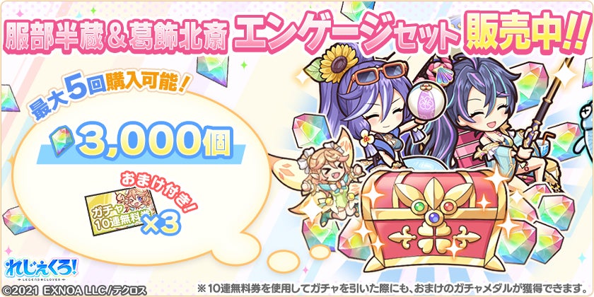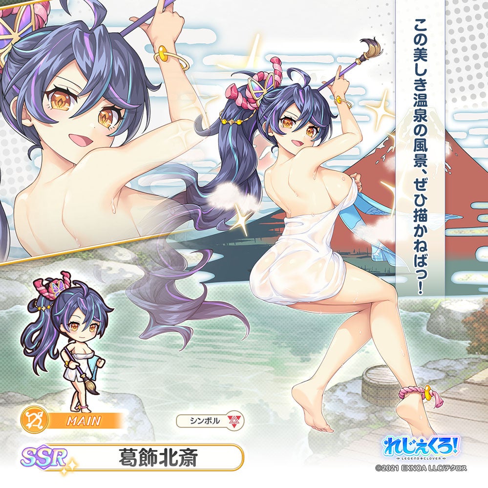 DMM GAMES「れじぇくろ!~レジェンド・クローバー~」にて、葛飾北斎、ヤト、服部半蔵が温泉衣装で登場!