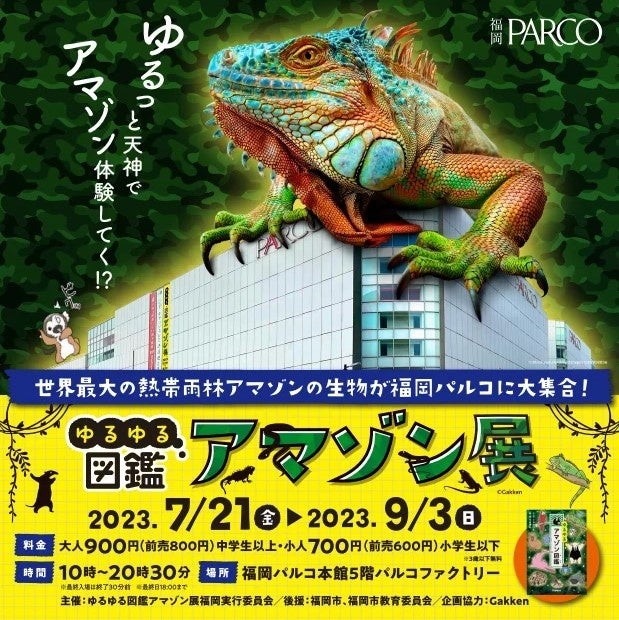 シリーズ累計60万部突破の大人気書籍「ゆるゆる図鑑」シリーズの『ゆるゆるアマゾン図鑑』が2023年7月21日から福岡PARCOで展覧会になって登場!