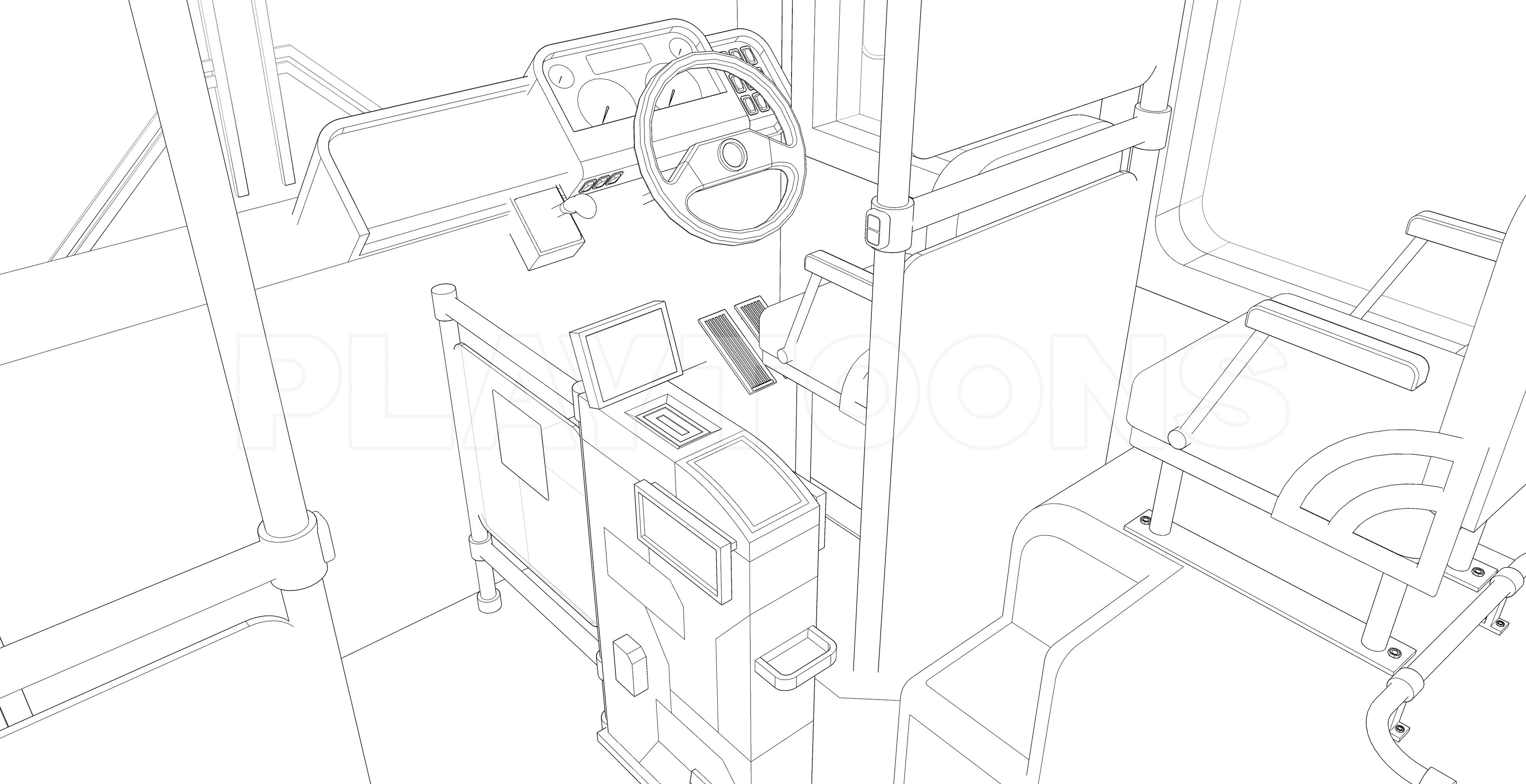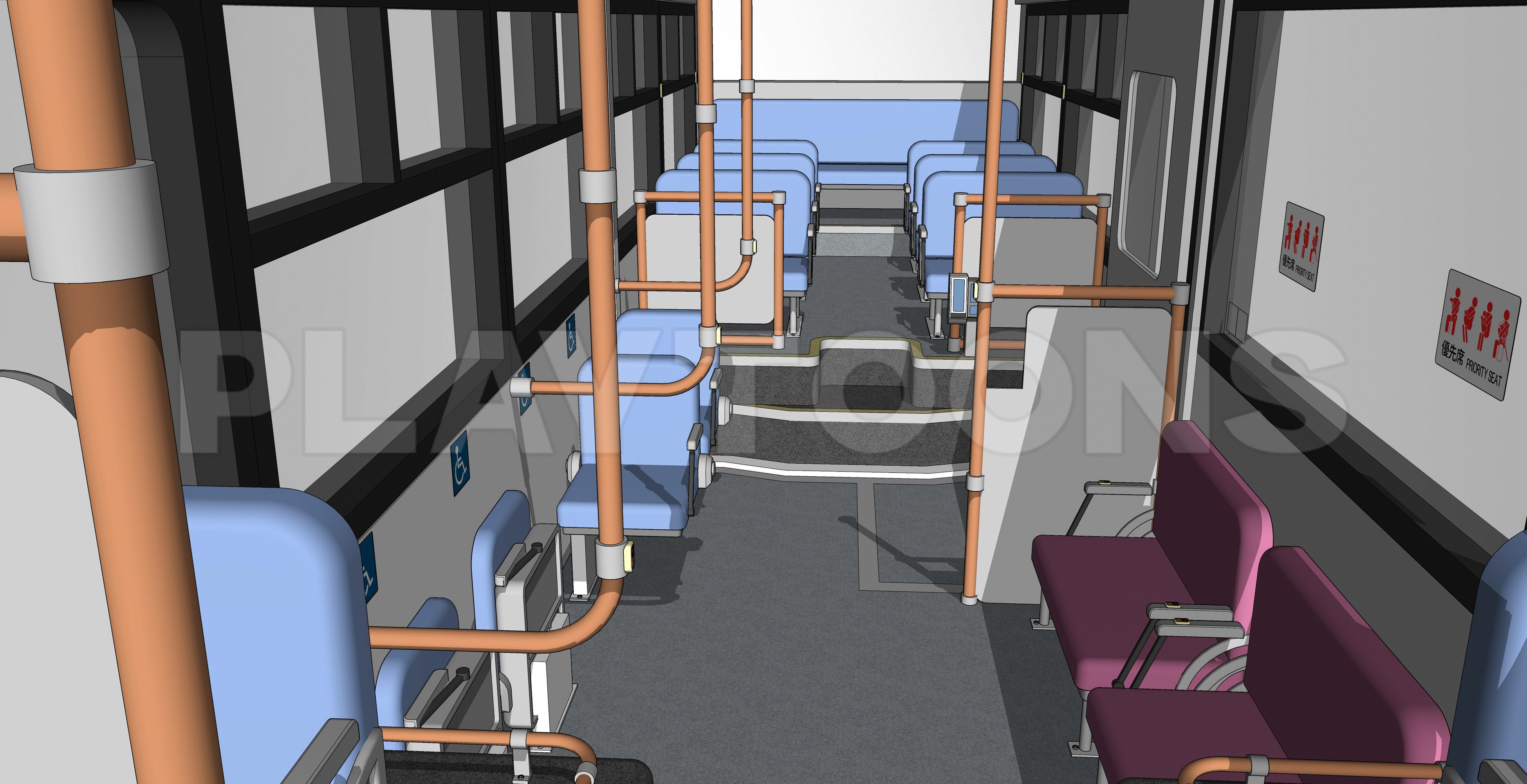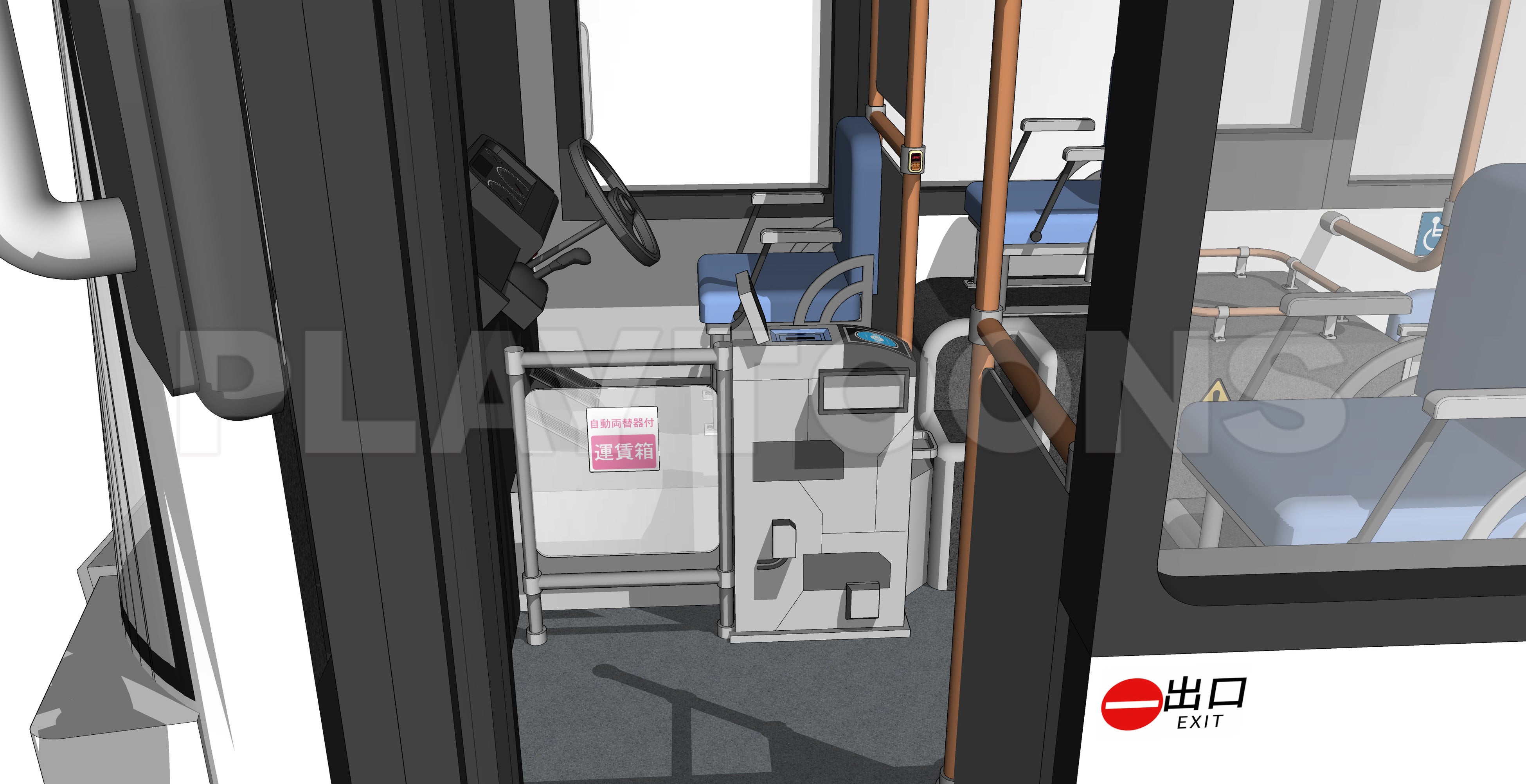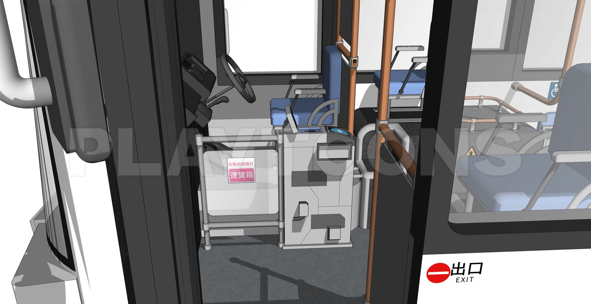 一般的な都内バスです。 後ろのドアから乗って前のドアから降りる方式で制作しました。