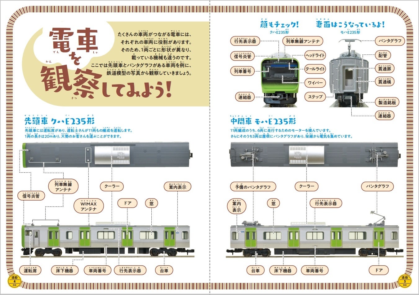 文章に出てくるすべての漢字にふりがなを振り、子どもが自分で読みやすい工夫をしてあります。また、詳しい説明が入っていますので、読み聞かせをしている大人も鉄道に対する理解を深めていただけます。身近な電車のおもしろさを、ぜひ親子で発見してください。