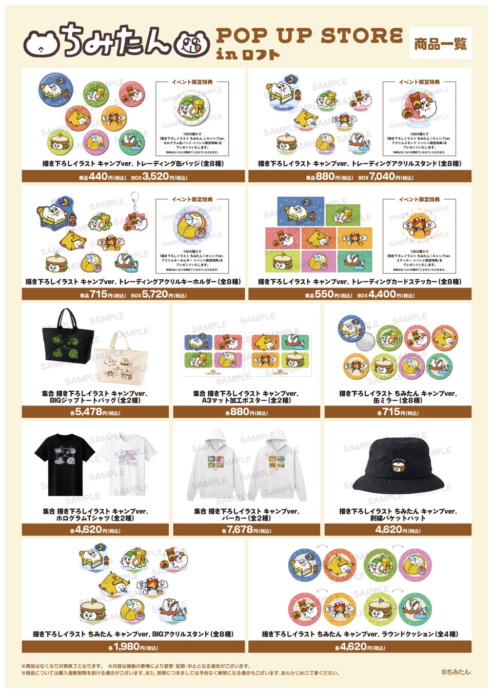 ※後日、ECサイト「AMNIBUS」受注販売時にて、BOX購入特典として「描き下ろしイラスト ちみたん J キャンプver. アクリルスタンド AMNIBUS限定特典」を予定しております。
