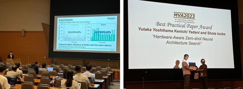 パナソニック オートモーティブシステムズ株式会社(本社所在地:神奈川県横浜市、以下、パナソニック オートモーティブシステムズ)は、2023年7月23日(日)から25日(火)に、静岡県浜松市で開催されたマシンビジョンの国際学会MVA2023(18th International Conference on Machine Vision Applications)で2件の論文を発表しました。2023年7月23日(日)に「Hardware-Aware Zero-Shot Neural Architecture Search(ハードウェア最適なニューラルネットワークの自動設計)」を口頭発表し、同日に「Pre-Annotation and Camera-LiDAR Late Fusion for the Easy Annotation of Point Clouds(点群データへのアノテーションを容易にする、事前アノテーションおよびカメラとLiDARのフュージョン)」をポスター発表しました。
