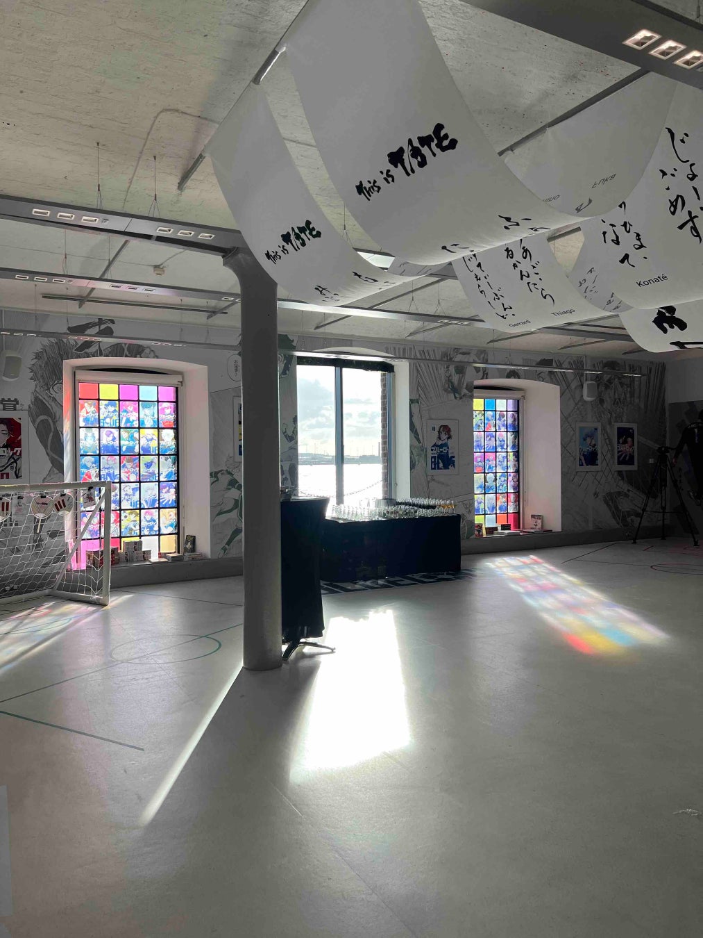 そのほか、会場には平仮名で書かれた選手の名前の垂れ幕や、講談社の漫画作品、小さなゴールポストも置かれ、楽しくクリエティブな空間に。さらに、会場を訪れる子どもたちには期間限定のぬりえやステッカーなどの配布されます。