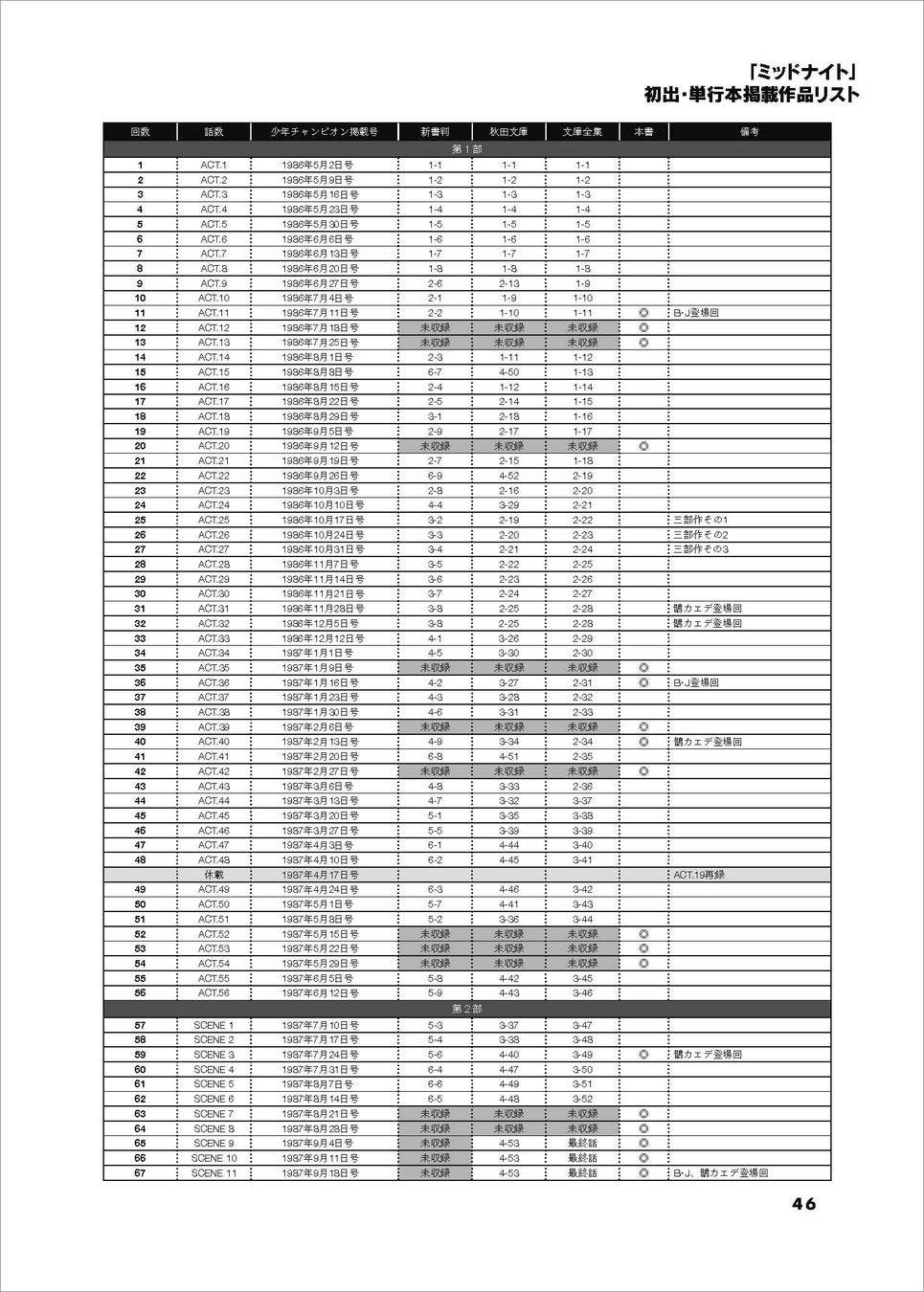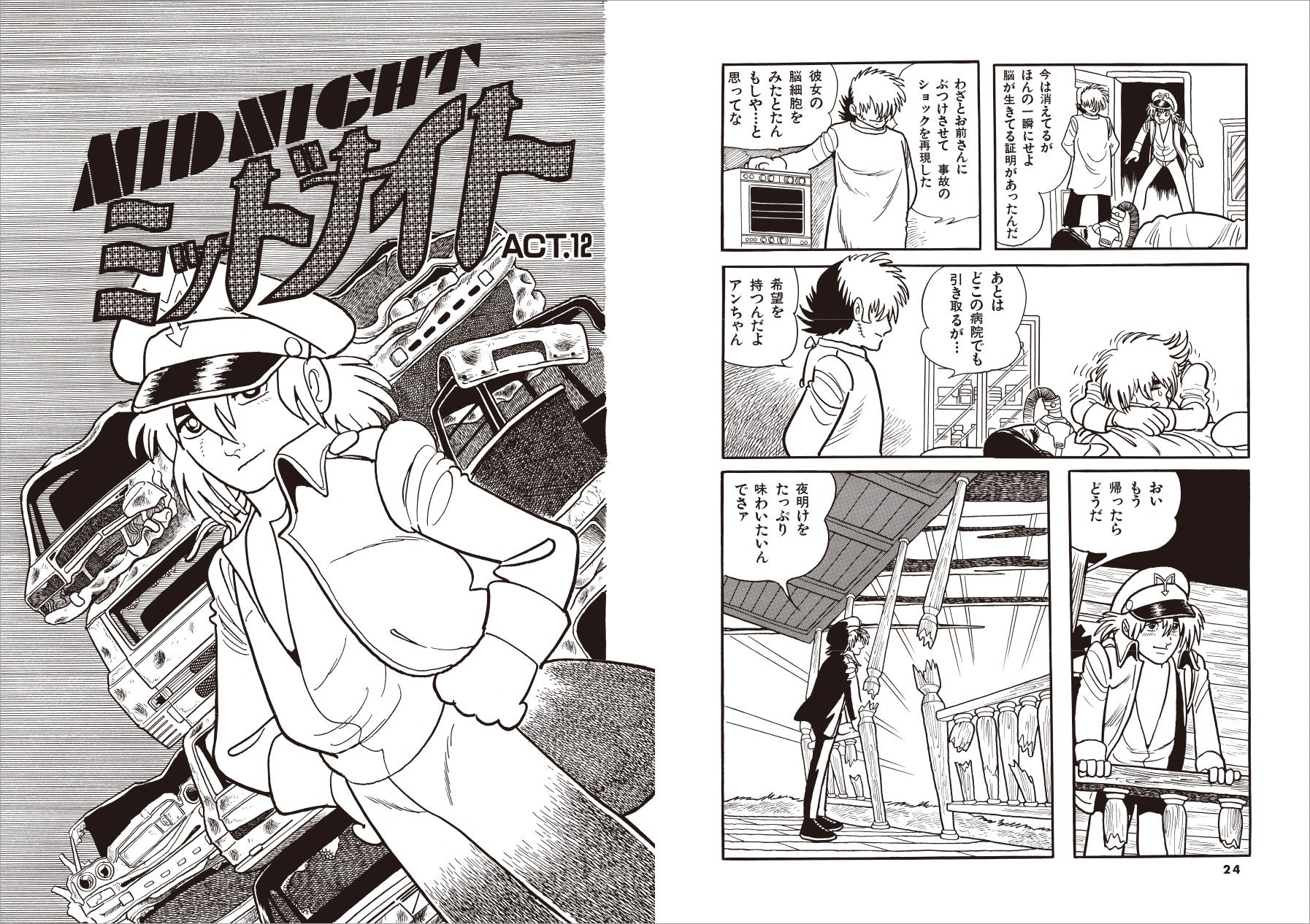 1986年から1987年にかけて『週刊少年チャンピオン』に連載された「ミッドナイト」には、実は単行本未収録の11話が存在します。本書はこの幻の11話を中心に、最終回に重要な役柄で登場するブラック・ジャック出演回3話分も収録。さらには最終3話も雑誌掲載時のオリジナルに忠実な形で収録しており、全18回のエピソードで「ミッドナイト」の新たな側面を堪能できる1冊となっています。