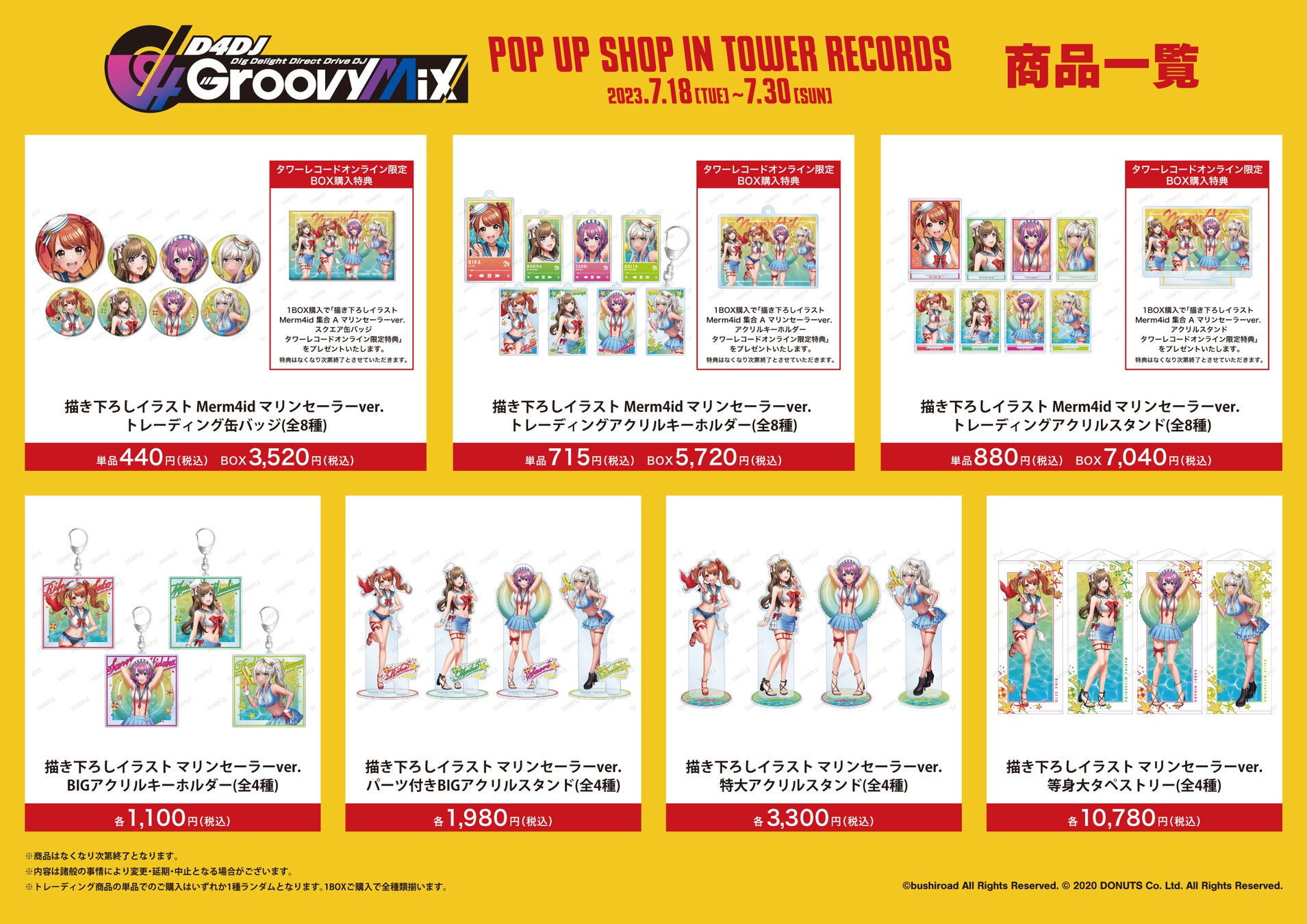 7/18(火)~7/30(日):新宿店/名古屋近鉄パッセ店/梅田NU茶屋町店/福岡パルコ店/タワーレコード オンライン