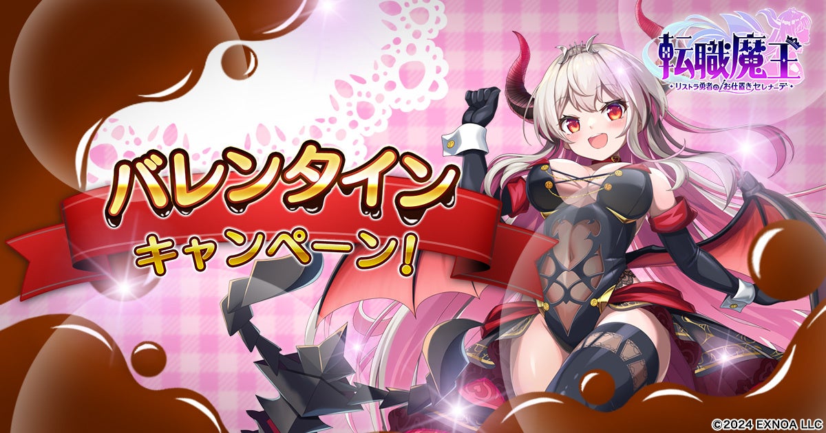 合同会社EXNOA(本社:東京都港区、CEO:村中 悠介、URL:https://games.dmm.com/)は、『転職魔王~リストラ勇者のお仕置きセレナーデ~』(以下、『転職魔王』)にて、バレンタインキャンペーンの開催をお知らせいたします。