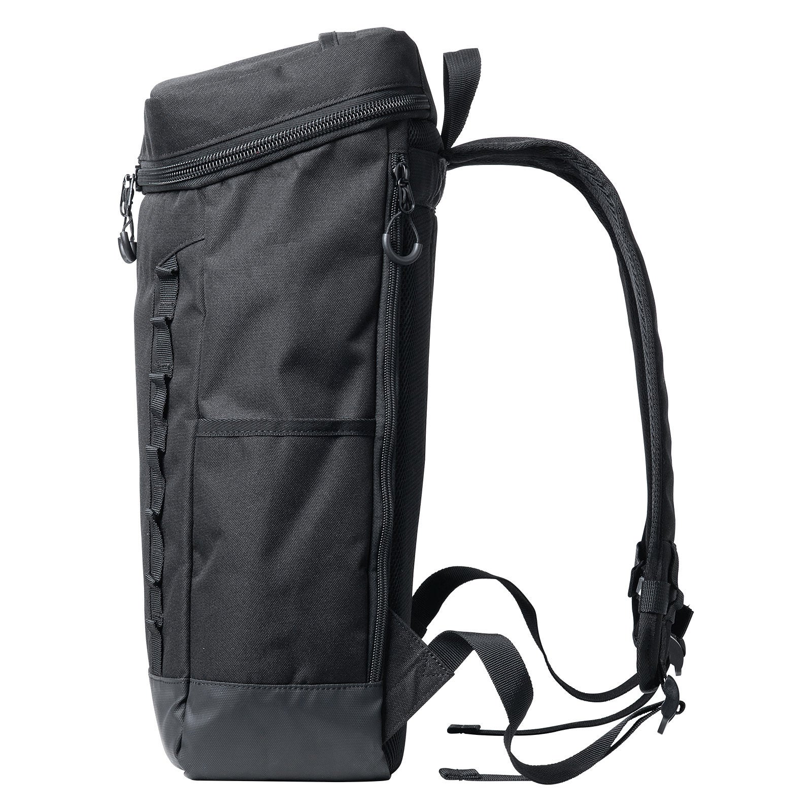 外側にタグやロゴマークのついていないロゴレスデザインのリュック。黒1色なので通勤や通学から普段使いにも使えて、カジュアルにもフォーマルにもマッチする、男女共用の万能リュックです。