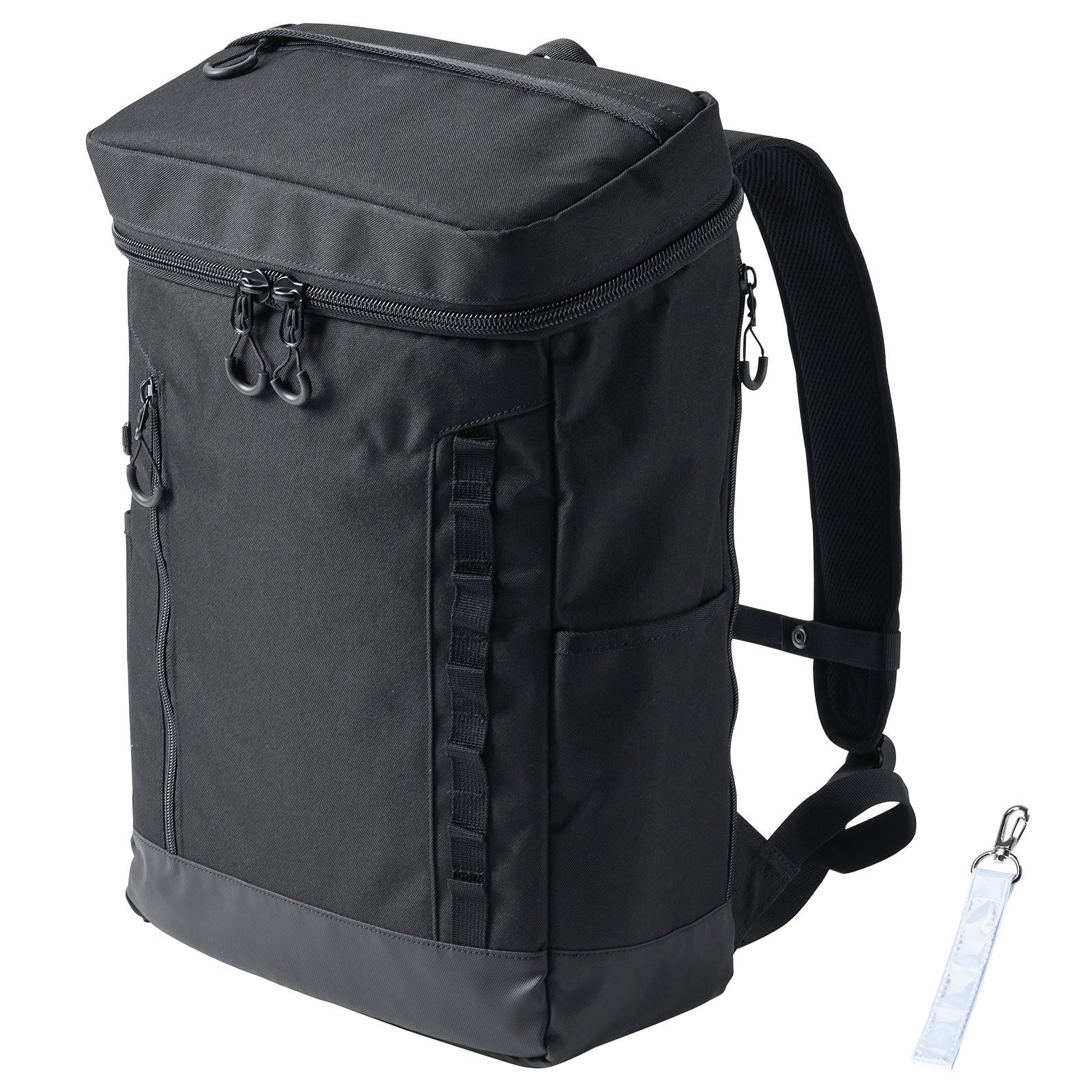 リュック スクエア ロゴレス 16インチ PC収納 通学 通勤 カジュアル 多機能 メンズ ビジネス ボックスパック バックパック 大容量 26L A4収納 ブラック