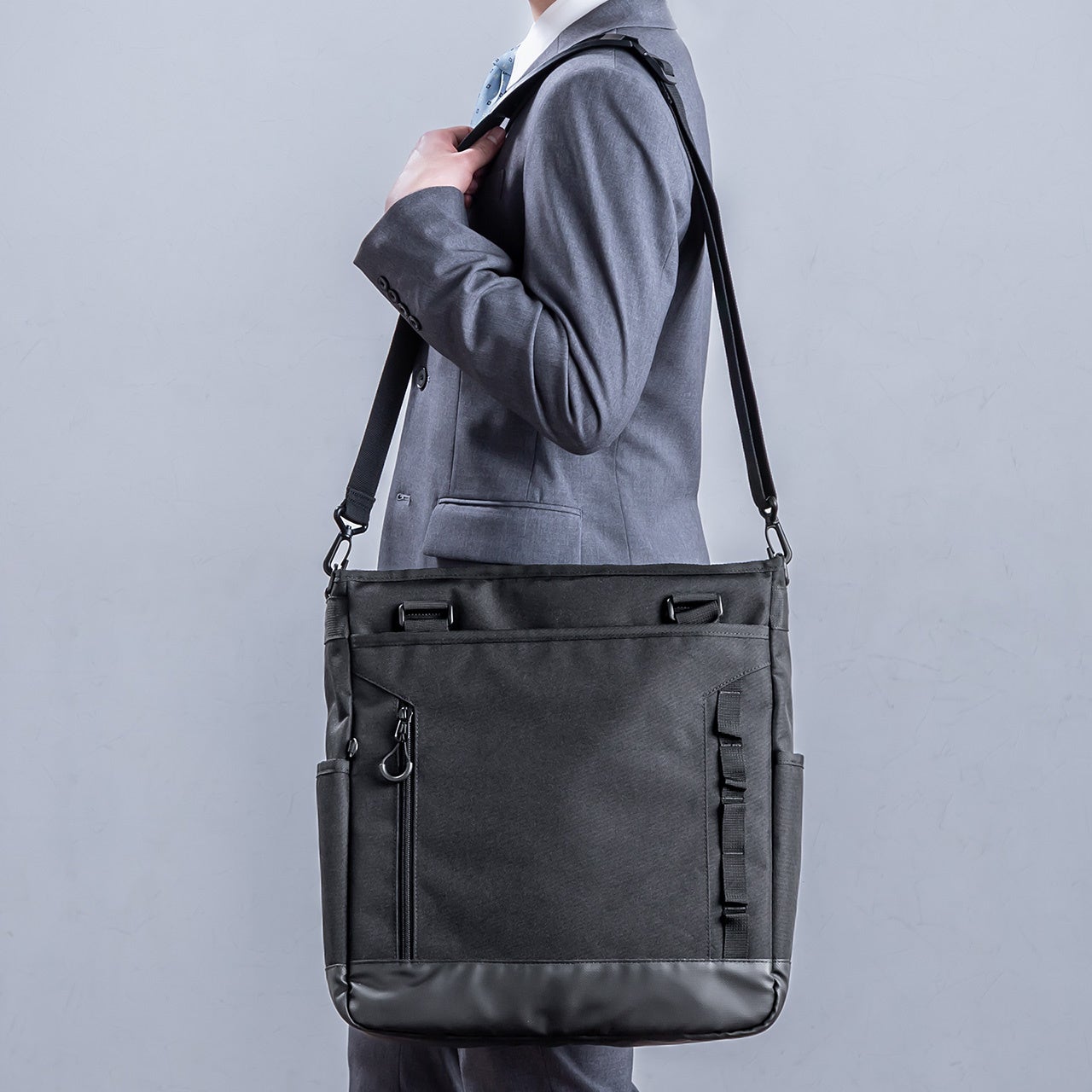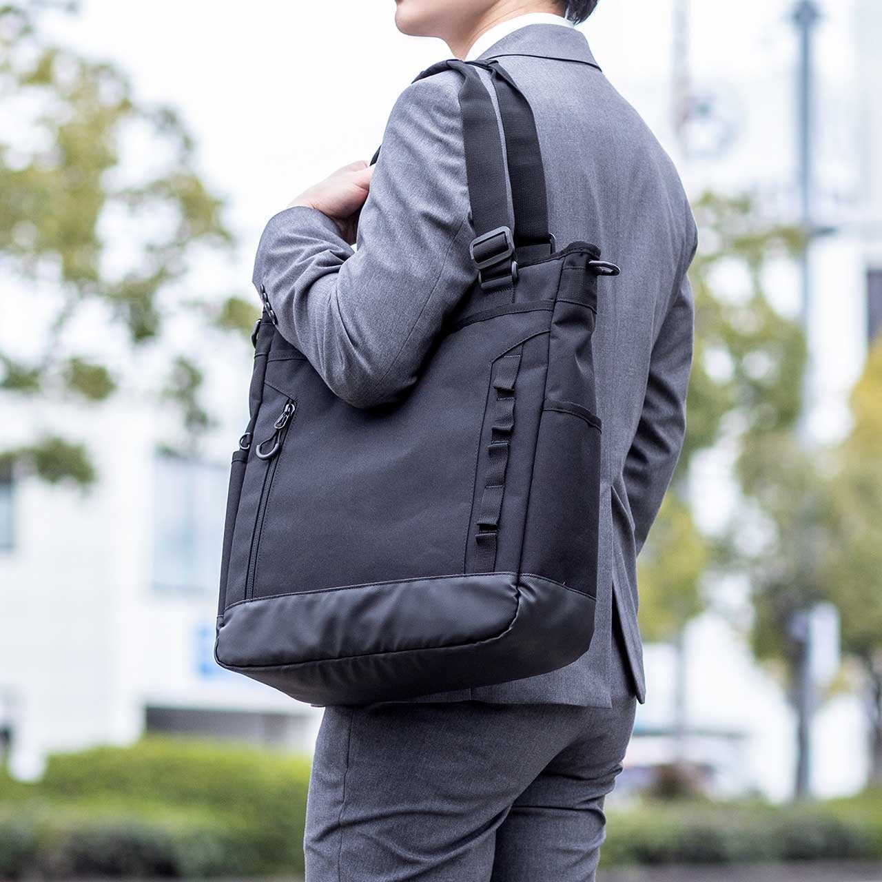 3WAYトートバッグ ロゴレス リュック / ショルダーバッグ 15.6インチ PC収納 通学 通勤 カジュアル 多機能 メンズ ビジネス 容量 21L A4収納 ブラック