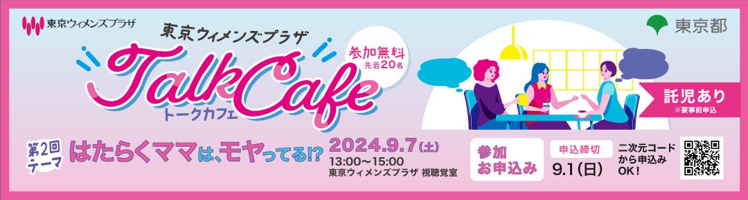 東京都の新企画!【9月7日(土曜日)参加者募集】子育てしながら働く女性のモヤモヤ、皆でおしゃべりしませんか?|東京ウィメンズプラザトークカフェ第2弾