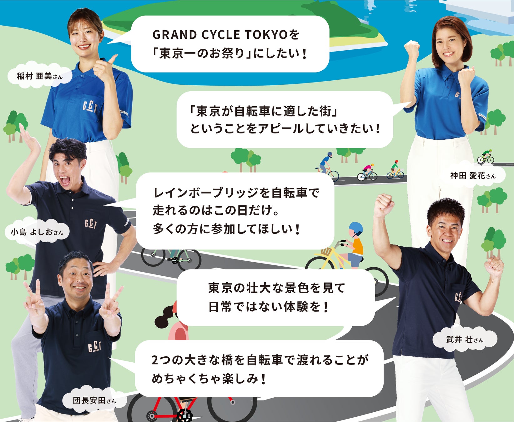 GRAND CYCLE TOKYOアンバサダー:稲村亜美さん、神田愛花さん、小島よしおさん、武井壮さん、団長安田さん