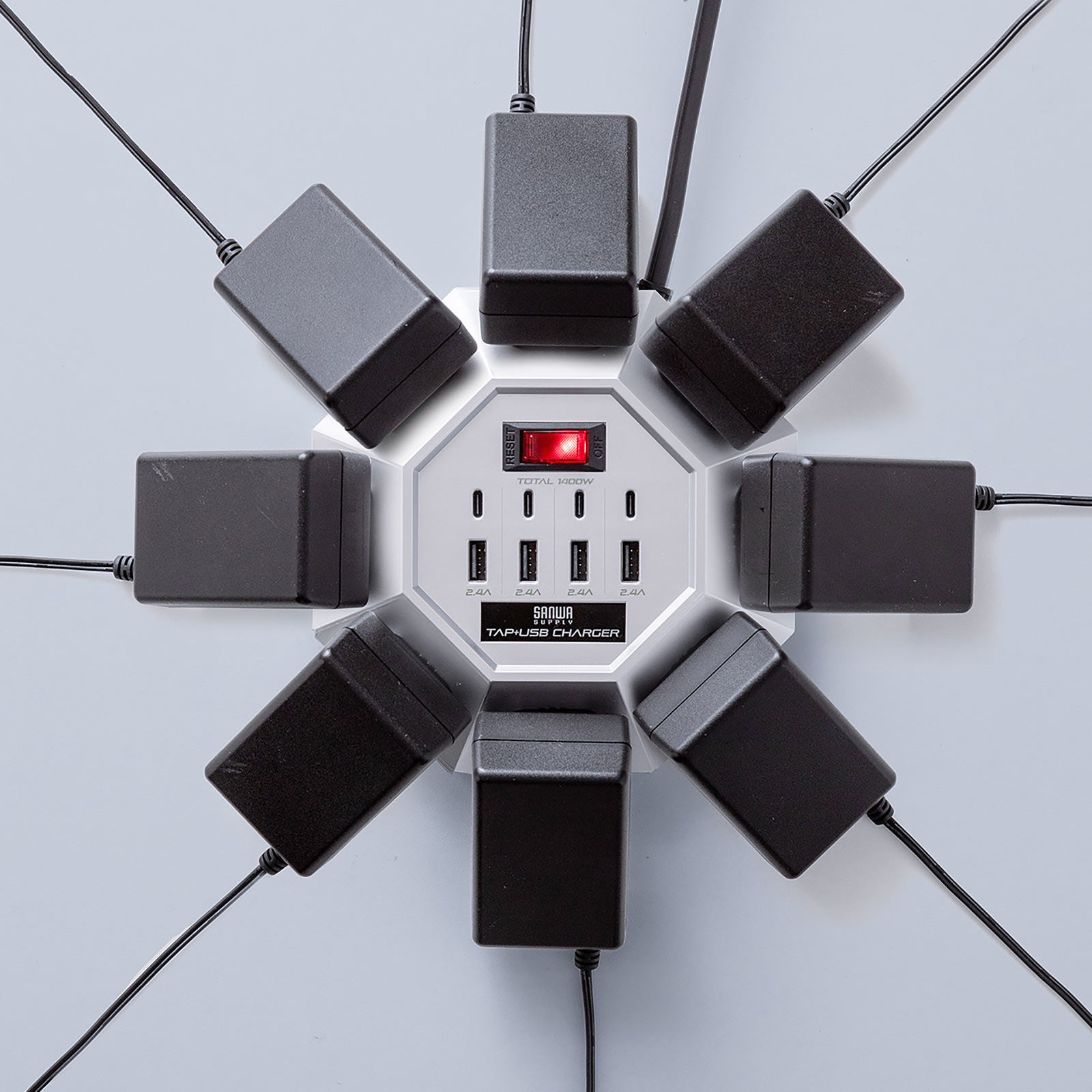 ・USB A×4、USB Type-C×4ポート搭載でスマホ・タブレットを同時充電可能