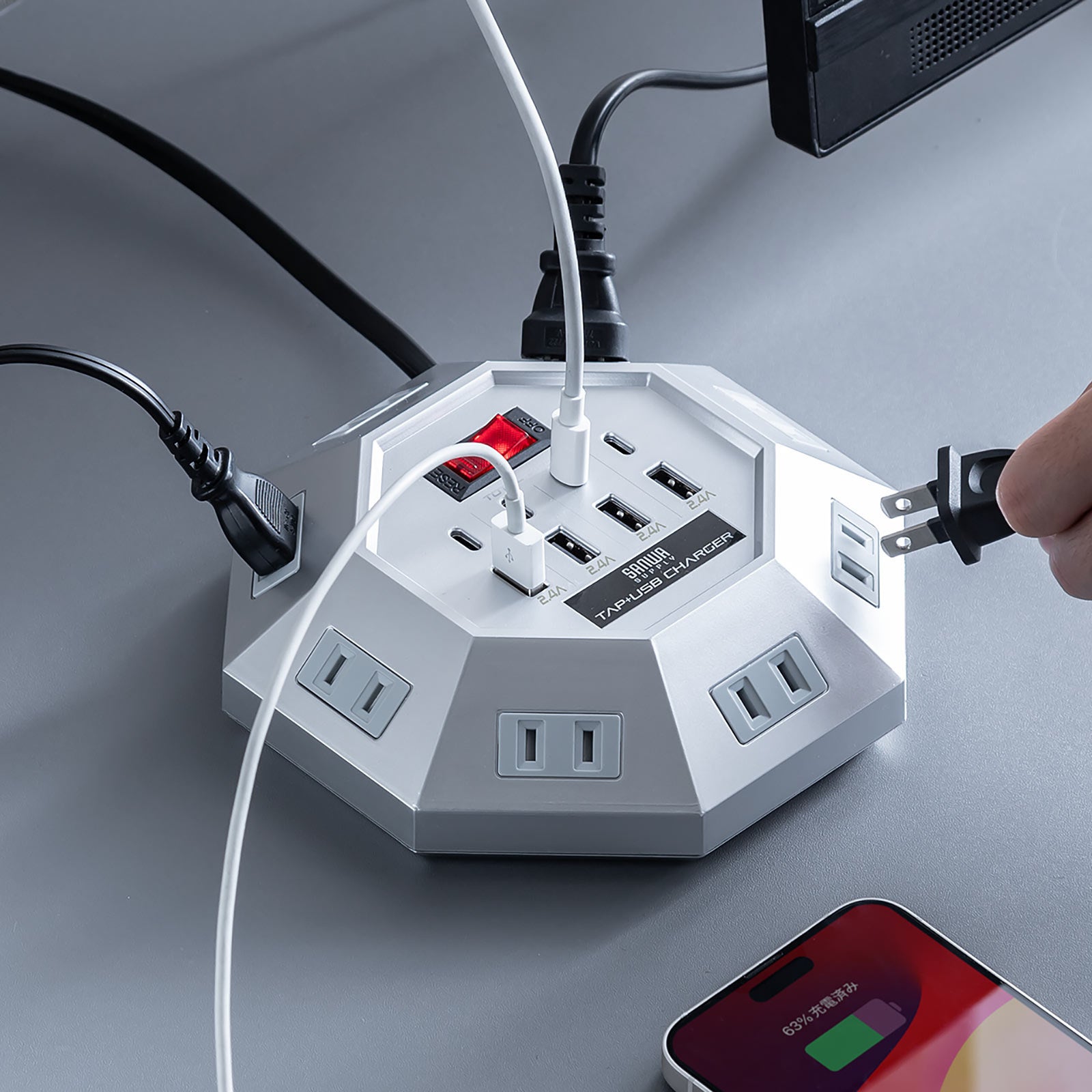 AC8個口×USB8ポート対応!八角形デザインで使いやすさ抜群の多機能電源タップを発売
