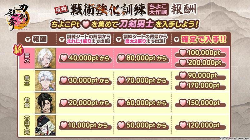 『刀剣乱舞ONLINE』イベント「戦術強化訓練 ~ちよこ大作戦〜」開催!さらに新刀剣男士「雲次(cv. 水島大宙)」が登場!