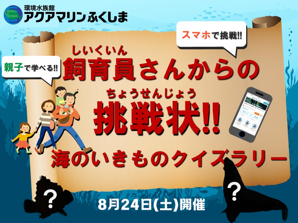 親子でたのしく学べる『飼育員さんからの挑戦状!!海のいきものクイズラリー』で、いつもとは違うアクアマリンふくしまを楽しむことができます。