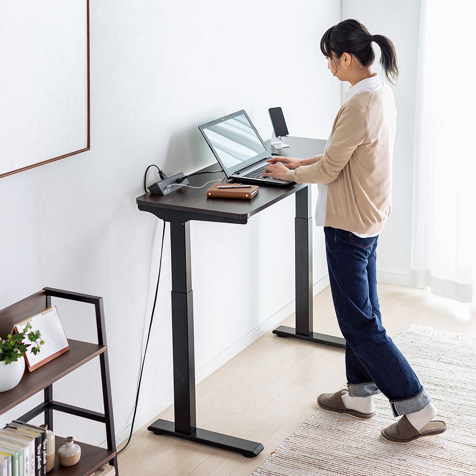 電源コードはたっぷり3m。コンセントから離れた場所でも余裕をもって配線でき、レイアウトの自由度が格段に向上します。昇降デスクや壁面設置でも、スムーズに配線できます。