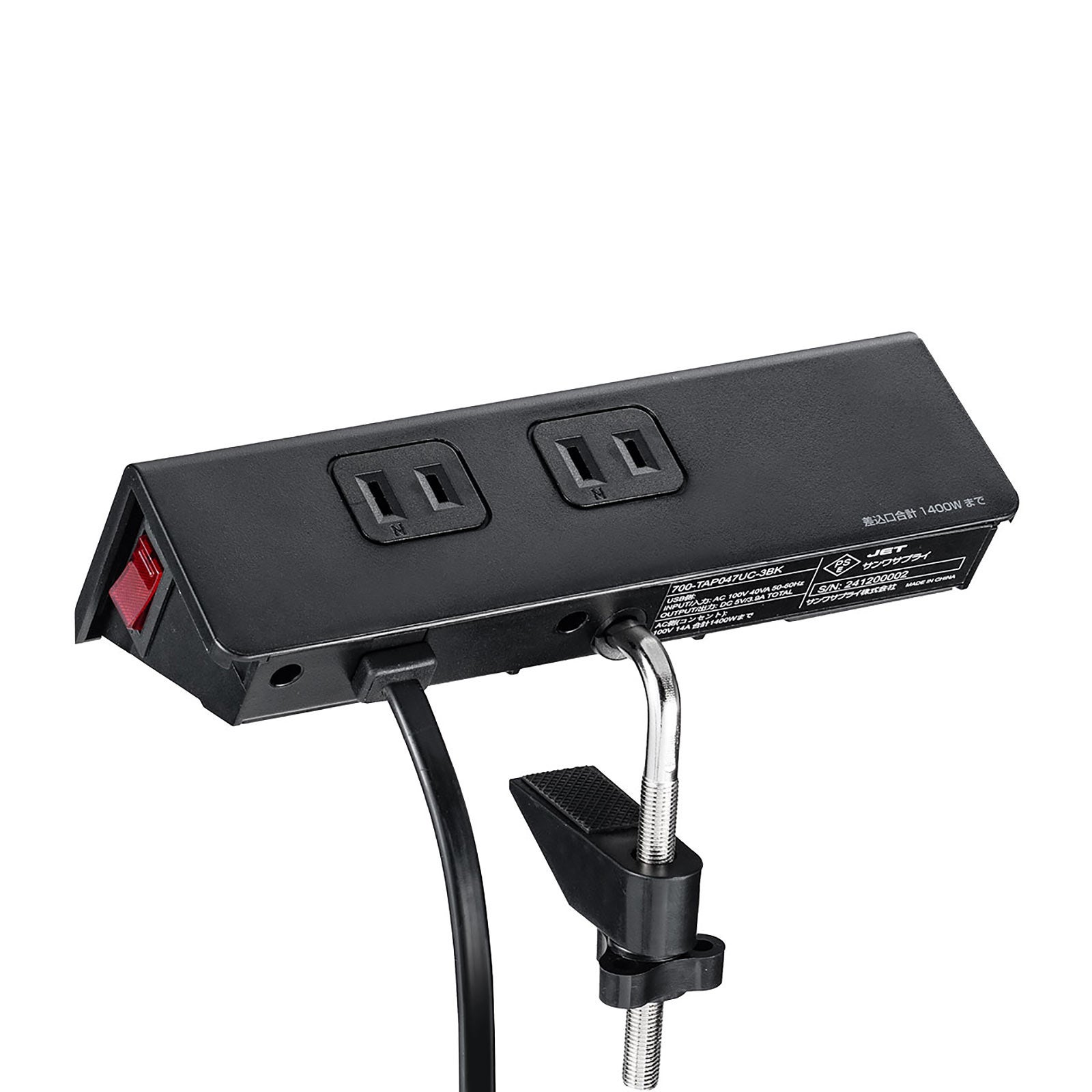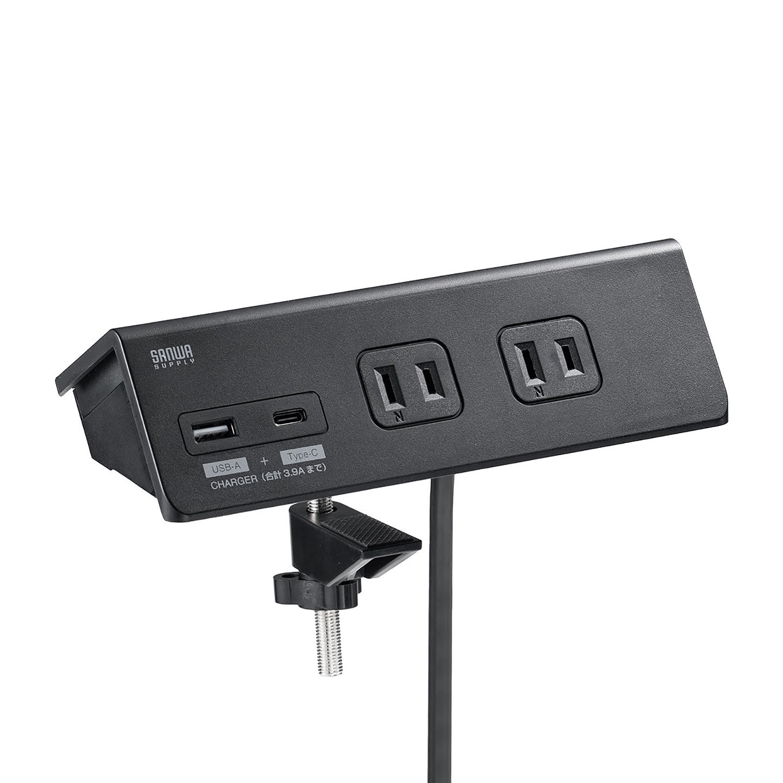 Type-CとUSB Aポートを搭載しスマホ・タブレットの充電にも対応、机にガッチリ固定できるので、ケーブルの抜き差しがしやすいクランプ付き電源タップ