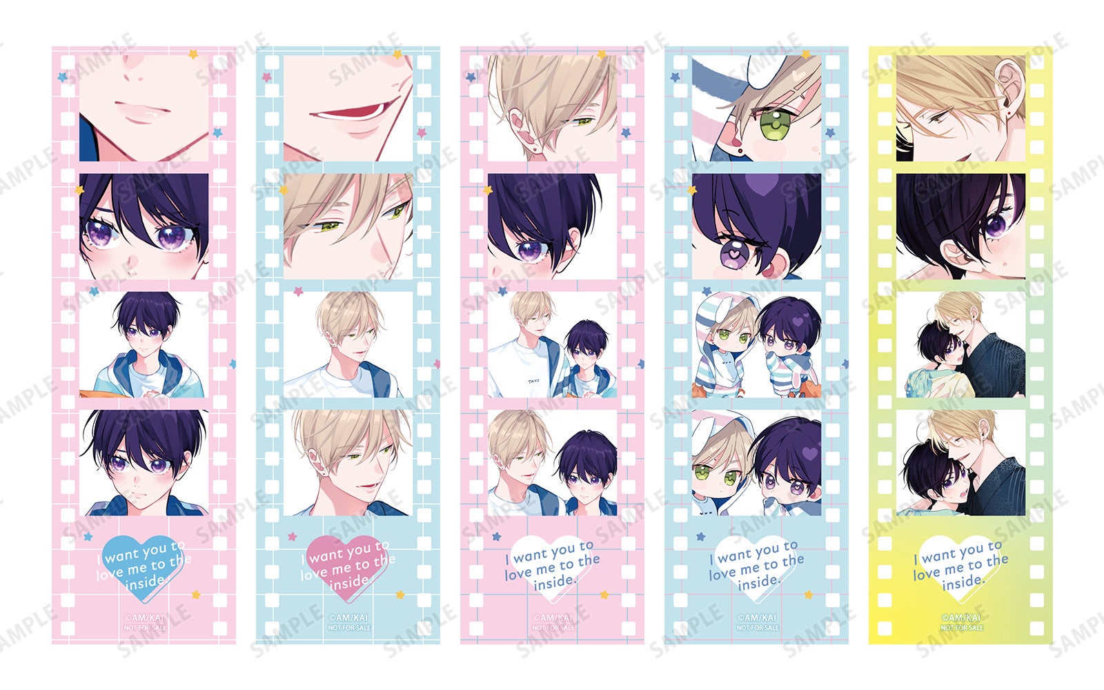 2023年7月6日(木)~2023年7月23日(日)の期間中、アニメイト通販にて『ナカまであいして』の対象キャラクターグッズをご予約1,100円(税込)毎に、通販事前予約キャンペーン限定「フィルム風イラストカード(全5種)」を1枚プレゼント!