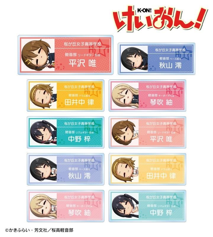 種類 :全5種(平沢 唯、秋山 澪、田井中 律、琴吹 紬、中野 梓)