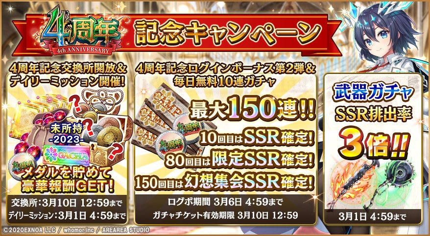 2月14日(金)メンテナンス後より、「4周年特別収集イベント」や「4周年記念ピックアップガチャ」、「4周年記念 無料10連チケットガチャ」等盛りだくさんです!