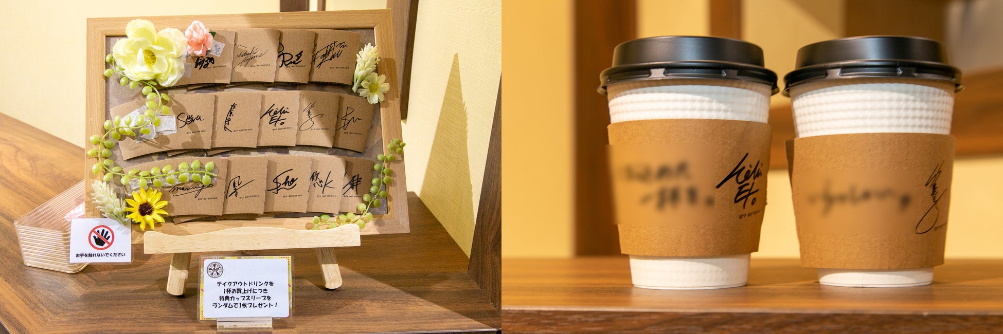 テイクアウトドリンクを購入すると1杯ごとにカップスリーブがランダムで1個もらえます。