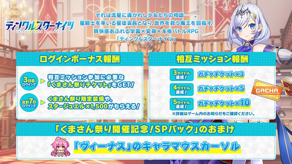 合計7日ログインでくまさん祭り限定装備や、スタージュエル×1,500をゲット可能!