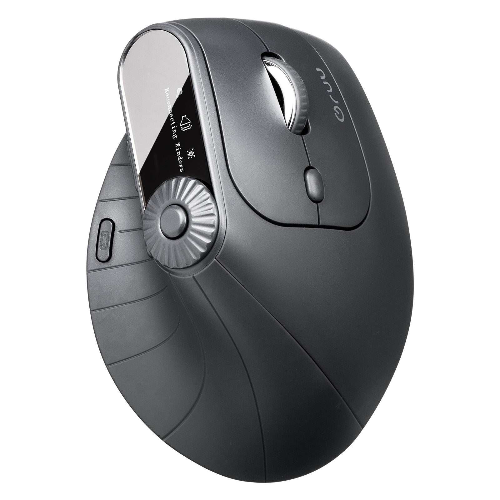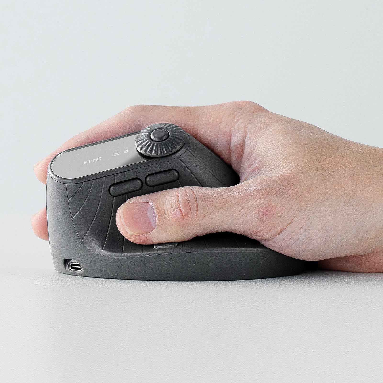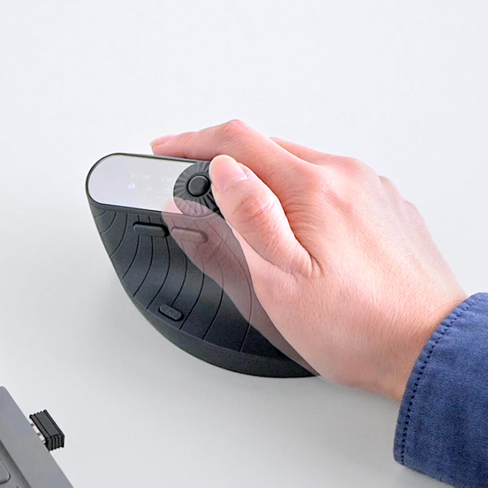 設定不要で6つの機能をダイヤルで操作ができ、液晶画面で接続状況やバッテリー残量などを一目で把握できる多機能エルゴノミクスマウス