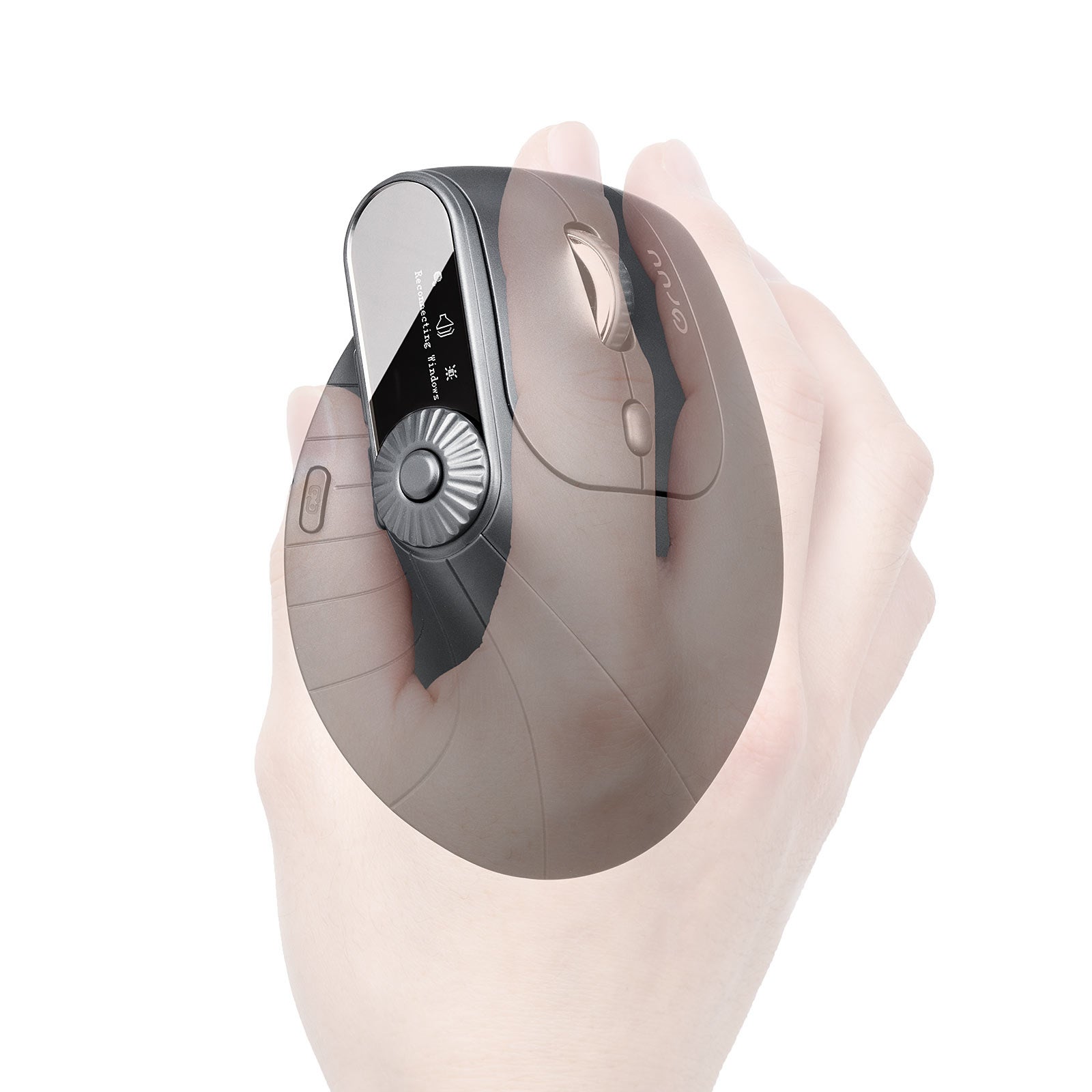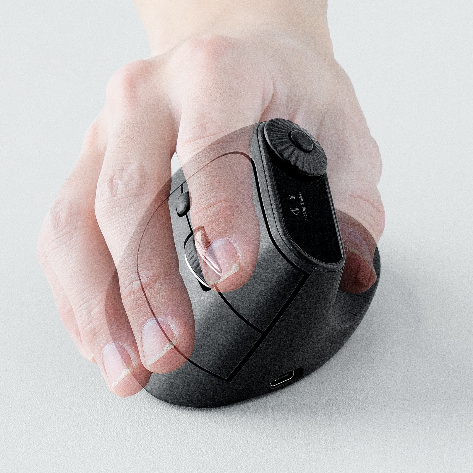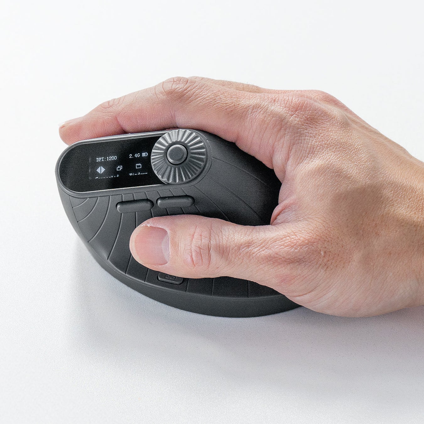 設定不要で6つの機能をダイヤルで操作ができ、液晶画面で接続状況やバッテリー残量などを一目で把握できる多機能エルゴノミクスマウス