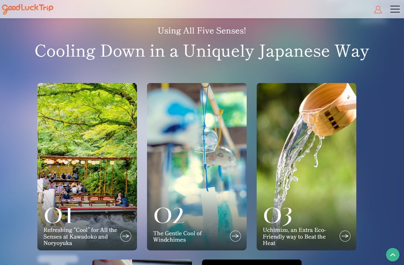 「日本人の夏の楽しみ方」では、風鈴の音色や、川床、打ち水、怪談話まで、五感で涼しさを感じる工夫について記事で紹介しており、まさに今回の調査結果で外国人旅行者が知りたいと思っている内容とも合致しています。