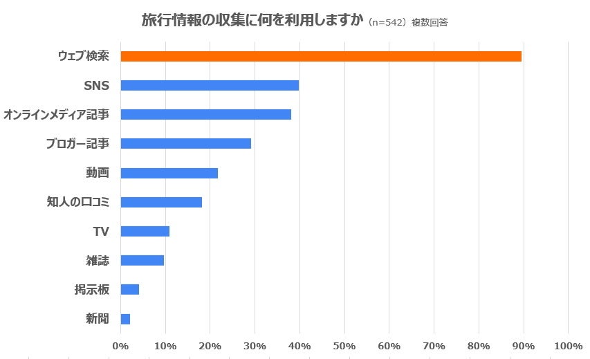旅行情報は「ウェブ検索」からの収集が最多