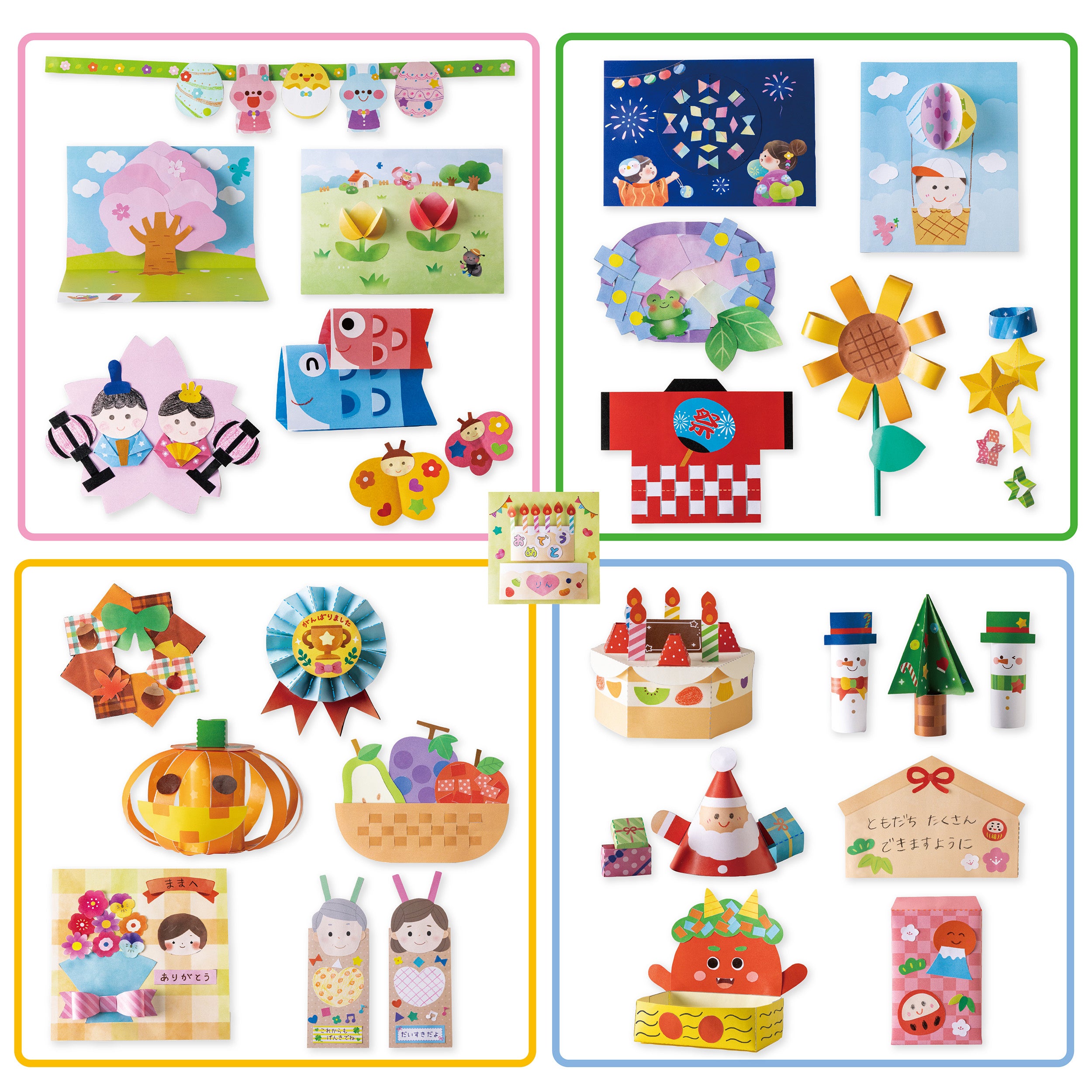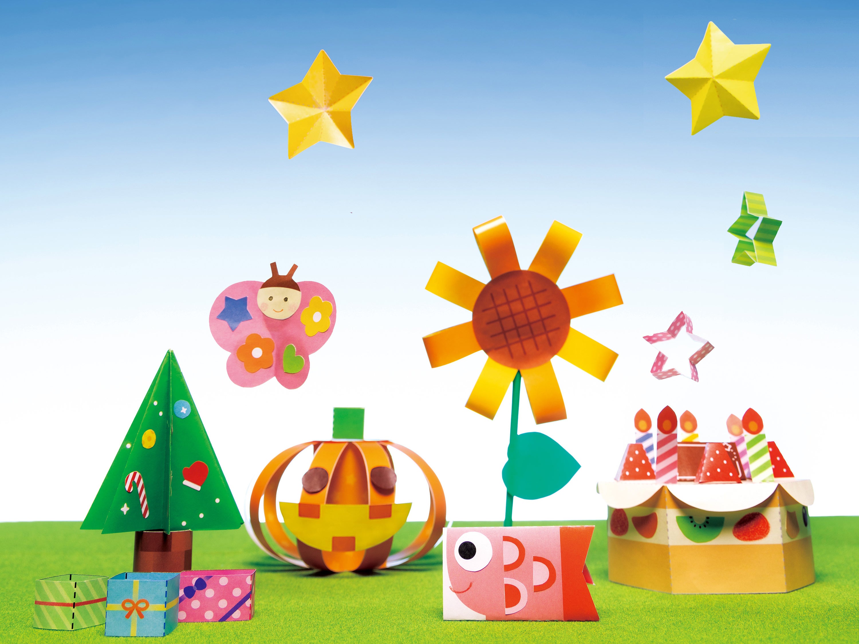 ひなまつり・ひまわり・ハロウィン・クリスマス・お正月など、季節や行事に親しみながら工作に取り組むことができます。