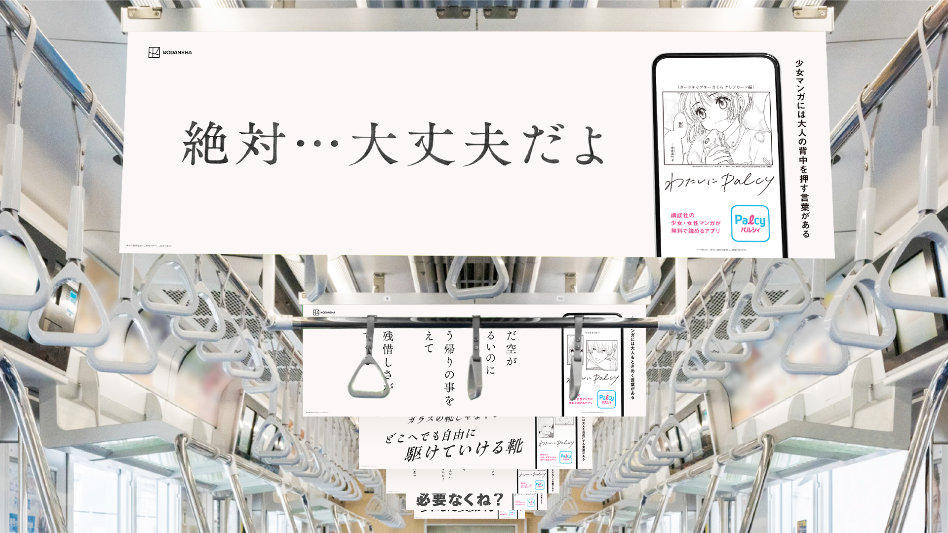 パルシィで配信されている20作品のコマ使用して制作。さわやかでおしゃれな雰囲気のある色彩で演出をしています。多様なキャラクターが登場することで、色々なマンガに出会えるパルシィの魅力を伝えます。
