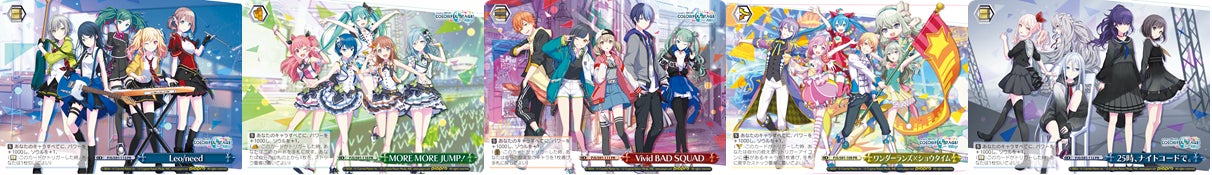 これ一つですぐに遊べるトライアルデッキ+(プラス)、「プロジェクトセカイ カラフルステージ! feat. 初音ミク」ではユニットごとに「Leo/need」「MORE MORE JUMP!」「Vivid BAD SQUAD」「ワンダーランズ×ショウタイム」「25時、ナイトコードで。」の5つの商品が同時発売!