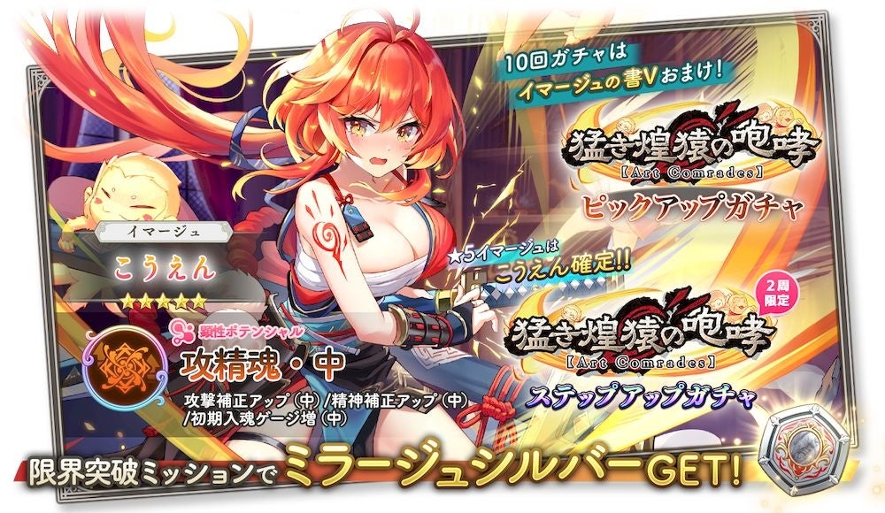 また、ステップ5にて★5イマージュ「こうえん」を確実にゲットできる5ステップアップガチャも同時開催いたします。