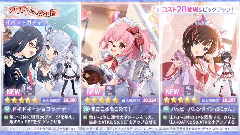 - 新★5メモリア「まごころをこめて!」「ドキドキ・ショコラーデ」「ハッピーバレンタインだにゃん♪」「ハンドメイド・リリィ」が登場するガチャを開催!