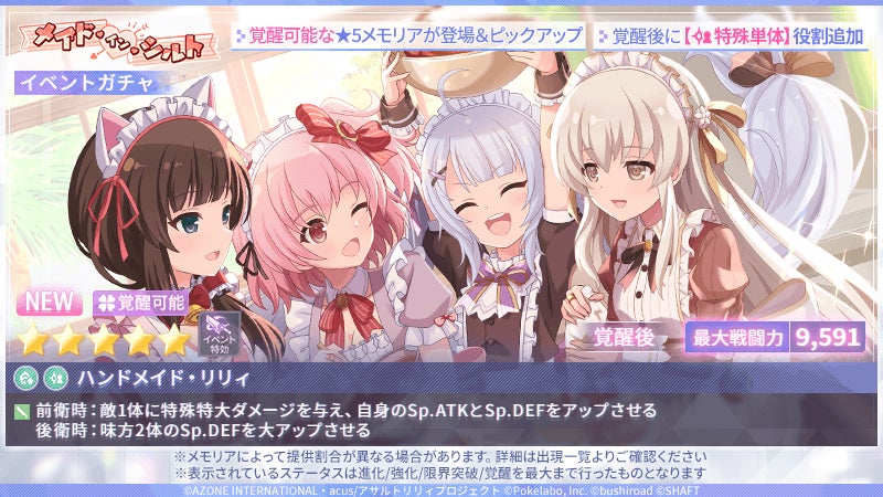 株式会社ブシロード(本社:東京都中野区、代表取締役社長:橋本義賢)と株式会社ポケラボ(本社:東京都港区、代表取締役社長:前田悠太、グリー株式会社100%子会社)は、好評配信中のゲームアプリ「アサルトリリィ Last Bullet」にて、2月10日(木)より新イベント「メイド・イン・シルト」を開始しましたことをお知らせ致します。報道関係の皆様におかれましては、ぜひ本情報をお取り扱いいただけますようお願い申し上げます。