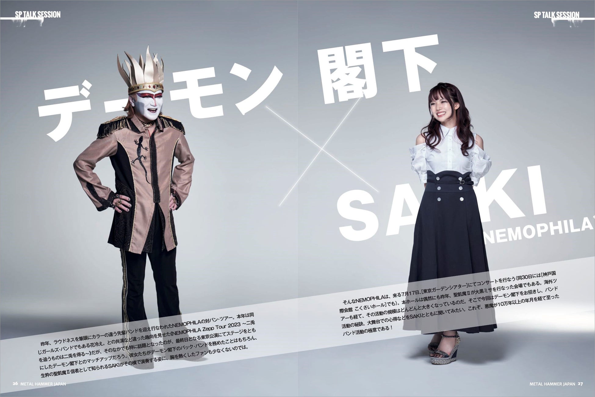 6月に行なわれたNEMOPHILAの対バン・ツアー、その目玉はなんといってもデーモン閣下との組み合わせだ。そこで今回は大の聖飢魔ⅡフリークでもあるSAKIが、デーモン閣下に“今後、ロック・シーンで末永く活躍していくには”を問う! 悪魔の説法にSAKIも思わず納得!?